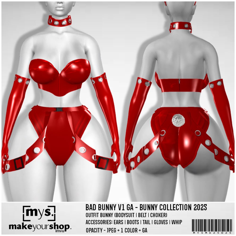 RED BAD BUNNY V1: Outfit (bodysuit, choker, belts), Boots, Ears, Whip, Tail, Gloves