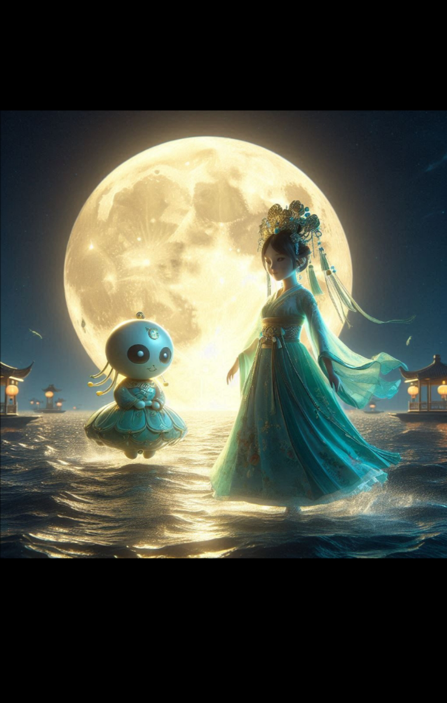 Xiao Ding took a spaceship from the distant planet Motato and met Sister Chang'e on the moon, and learned about what happened to her in the past! I sympathize with his plight! So I specially brought her to the earth for a short trip! Below is the conversation between the two of them;