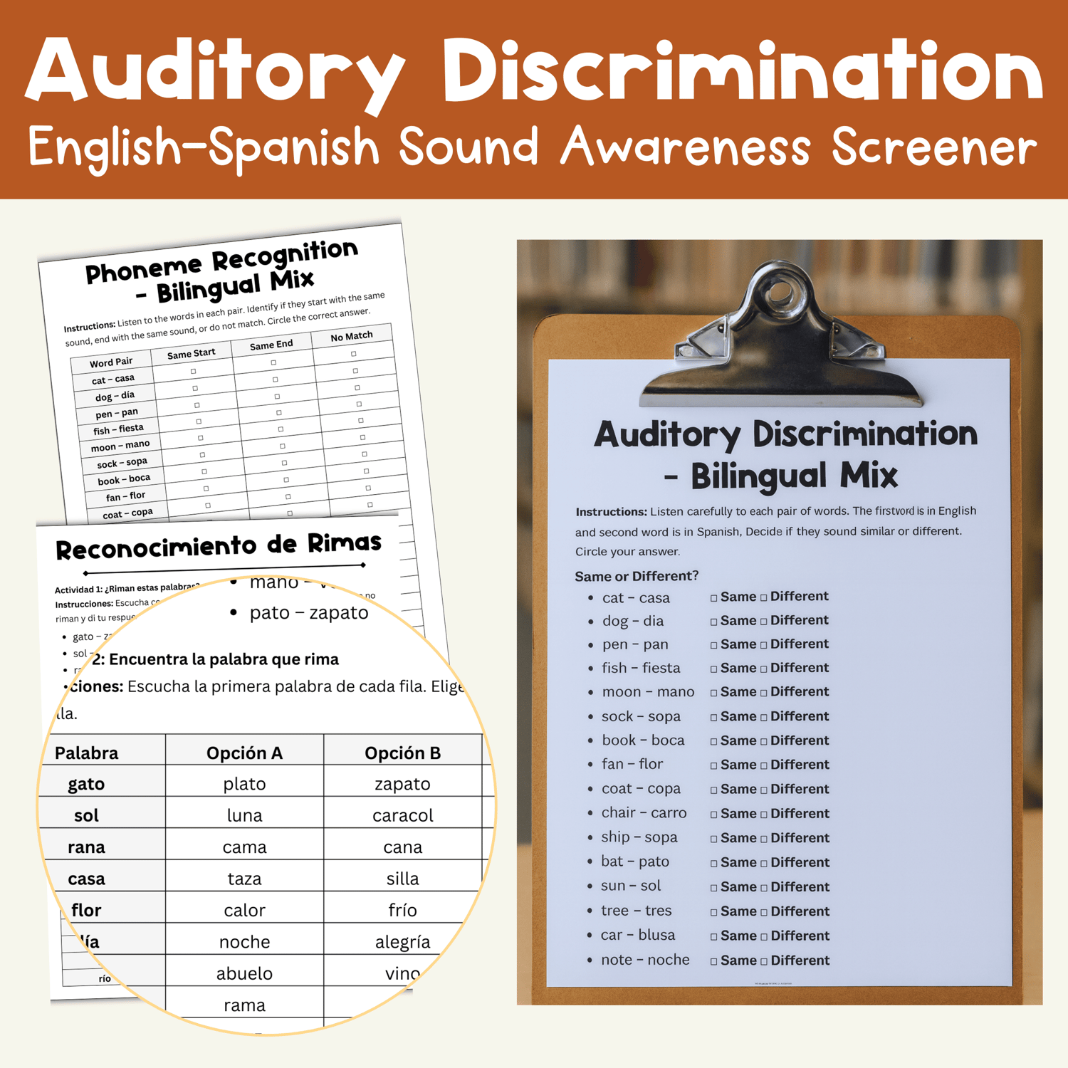 This Bilingual Auditory Processing Screener is designed to evaluate listening skills in both English and Spanish through structured, research-based activities.