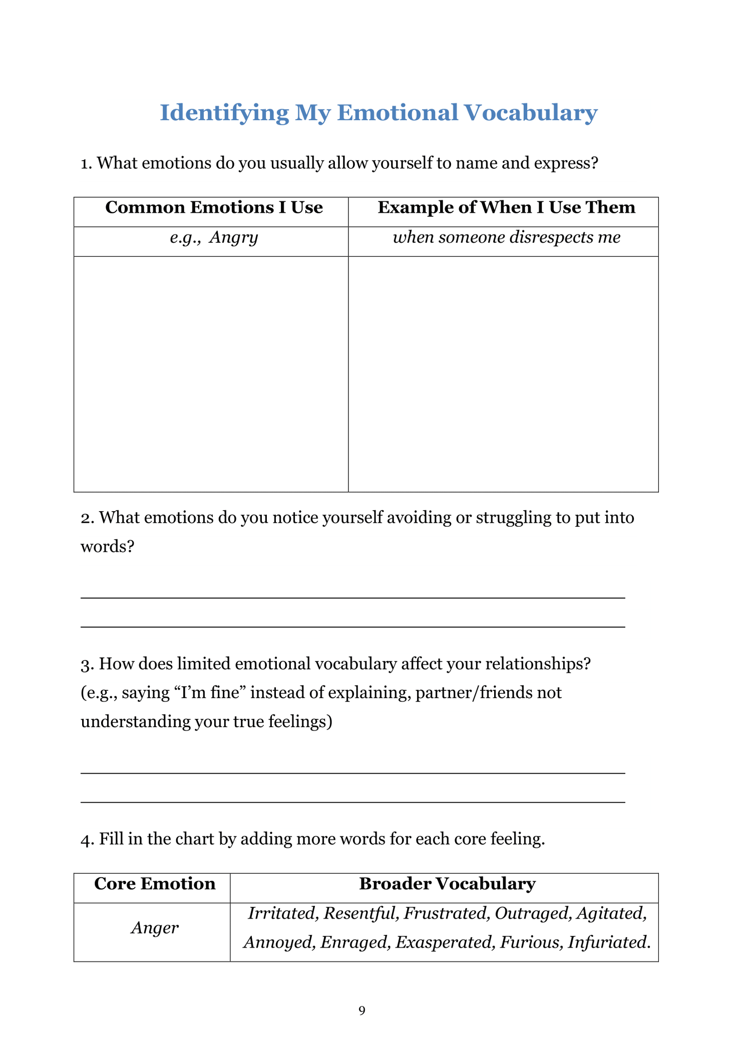 - Identifying My Emotional Vocabulary