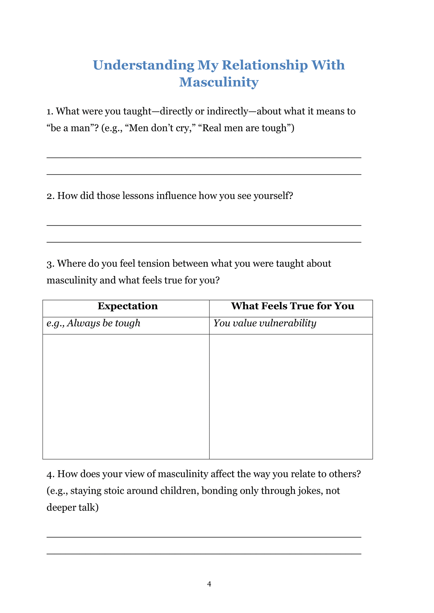 Men Mental Health Worksheets