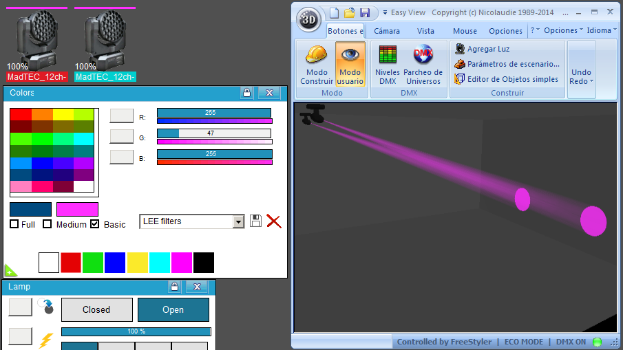 Esta Librería SSL2 está optimizada para trabajar con Magic 3d Easy View. Es decir para ver una representación 3D de las secuencias que estemos realizando con Freestyler, QLC+ o cualquier otro soft que se conecte con Magic 3d.