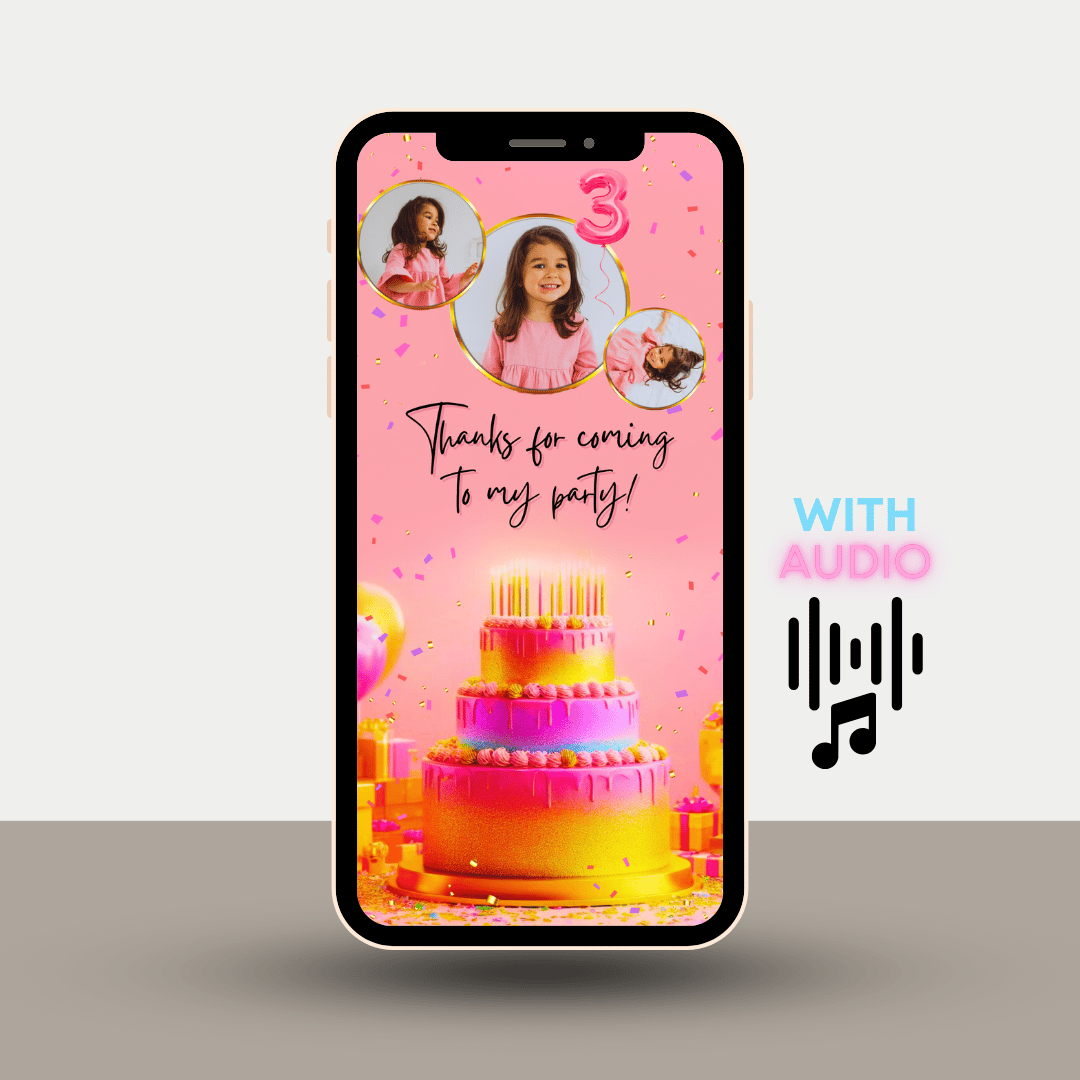 Make your birthday announcement stand out with this stylish Pink & Gold Thank You with Audio, designed specifically for phones! Perfect for sharing as a WhatsApp Status, Instagram Story, or sending directly to friends and family.