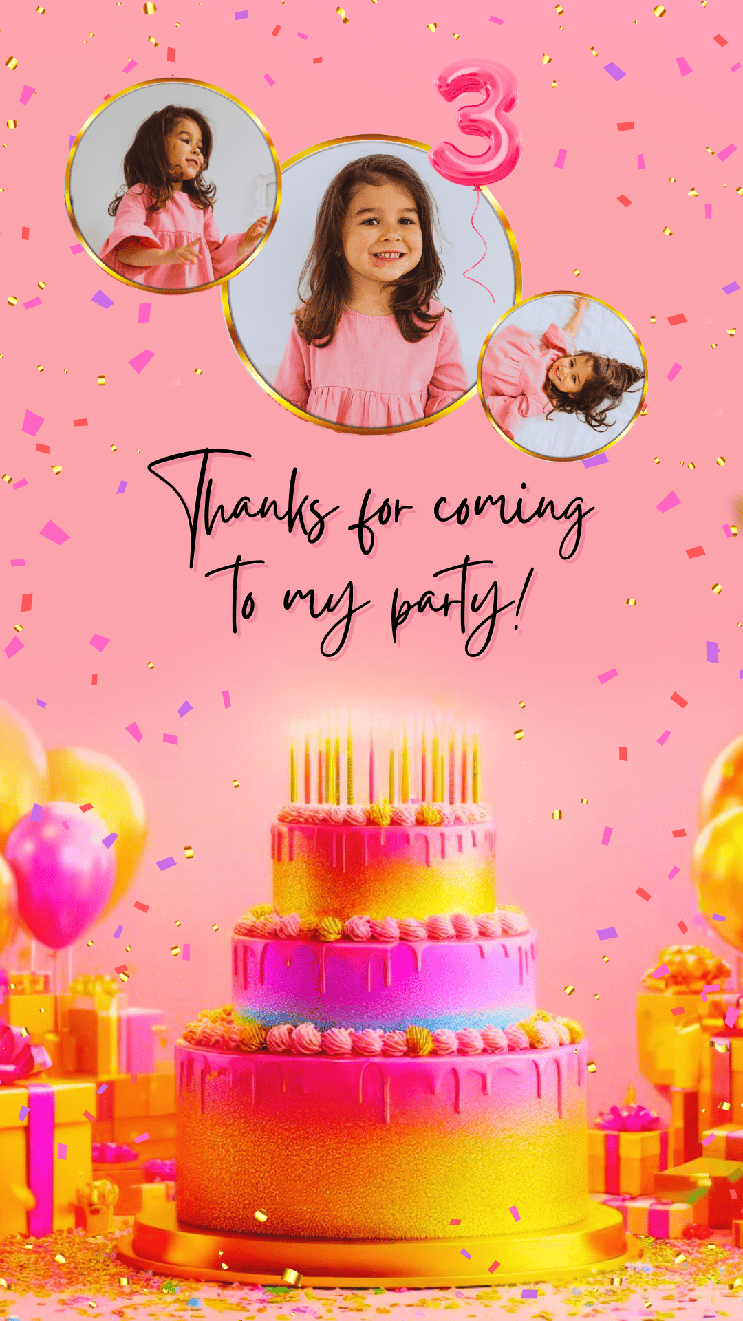PINK & GOLD BIRTHDAY THANK YOU WITH AUDIO β MOBILE FORMAT (1080x1920) | DIGITAL DOWNLOAD