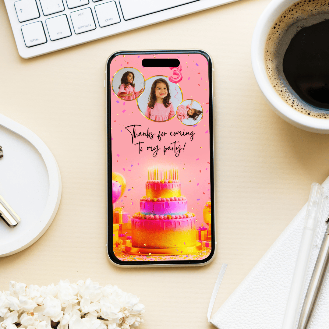 π Pink & Gold Birthday Thank You with Audio β Mobile Format (1080x1920) | Digital Download