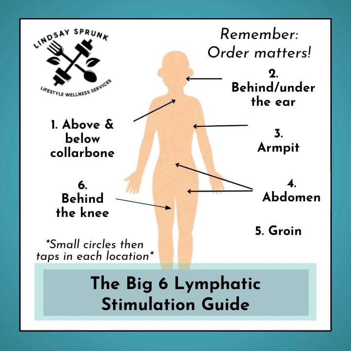Your lymphatic system is your body's natural detox network - a complex system of vessels and nodes that helps remove waste and toxins while supporting immune function. This guide shows you the 6 key lymph node locations where gentle self-massage can help stimulate flow and drainage, supporting your body's natural detox process and reducing inflammation. After "waking up" these 6 locations, be sure to then move onto some form of movement such as rebounding/bouncing, walking, or any form of exercise that allows the lymph fluid to now flow freely through all the sites and follow up with adequate hydration.