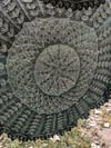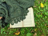 The initial themes for this shawl, back in the very beginning, were leaves and safety. I chose a selection of traditional lace motifs, carefully picked to complement each other while providing variation. I tried to arrange them in ways that bear significance to me - a star of hope in the center, surrounded by gentle waves, and by leaves that first shelter inward and then bloom outward, all interspersed with enclosing rings of concentric garter stitch. The word ‘treegarth’ uses the archaic -garth ending to refer to an enclosed green space or a garden. I first stumbled across it in my early childhood love of Tolkien. It felt perfect to describe the sense of enclosure and peace and growth I intended this shawl to provide.