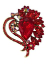 Dramatic red heart faceted stones with AB crystal accents in a flowing floral design. Perfect for evening or holiday looks.