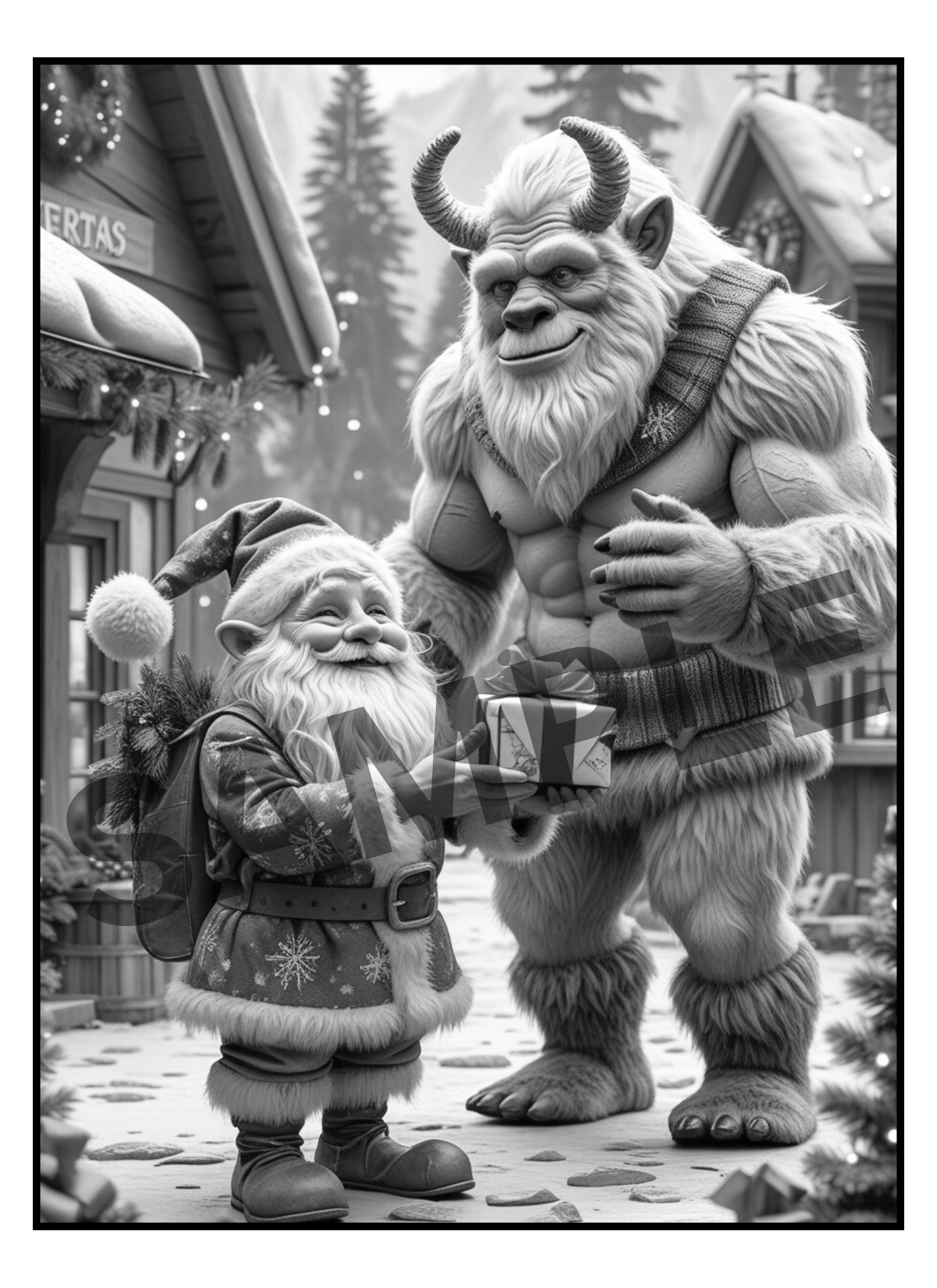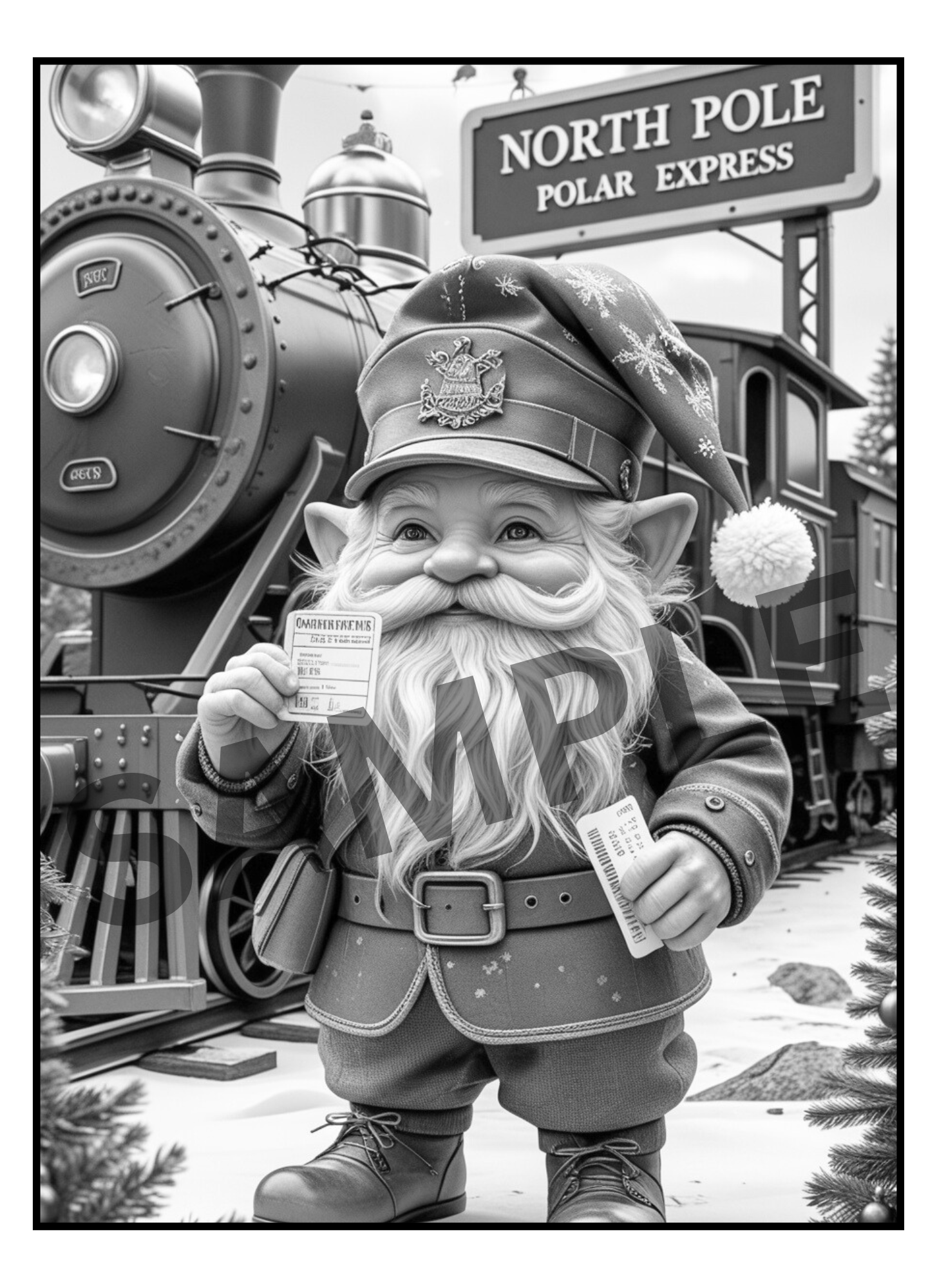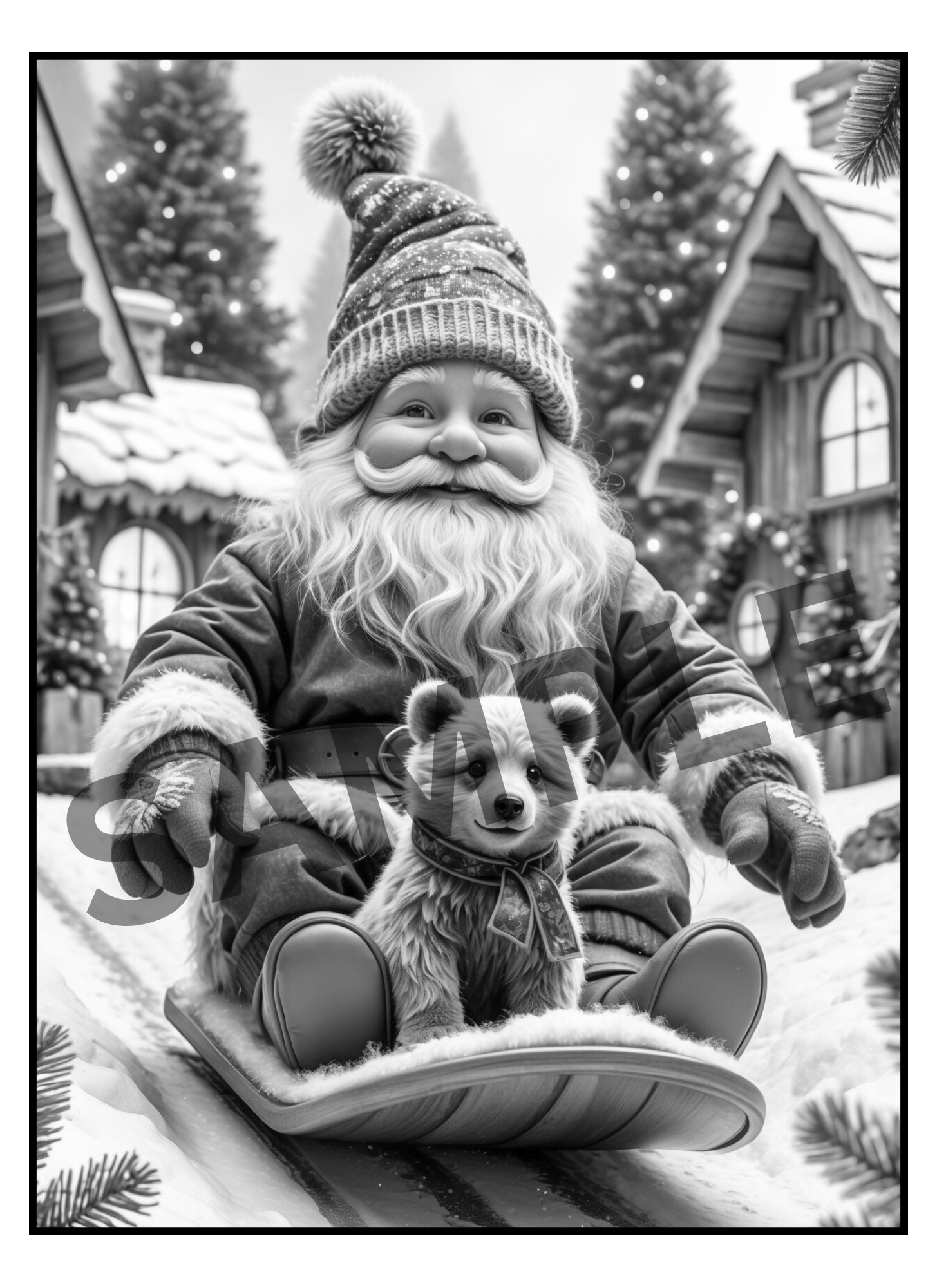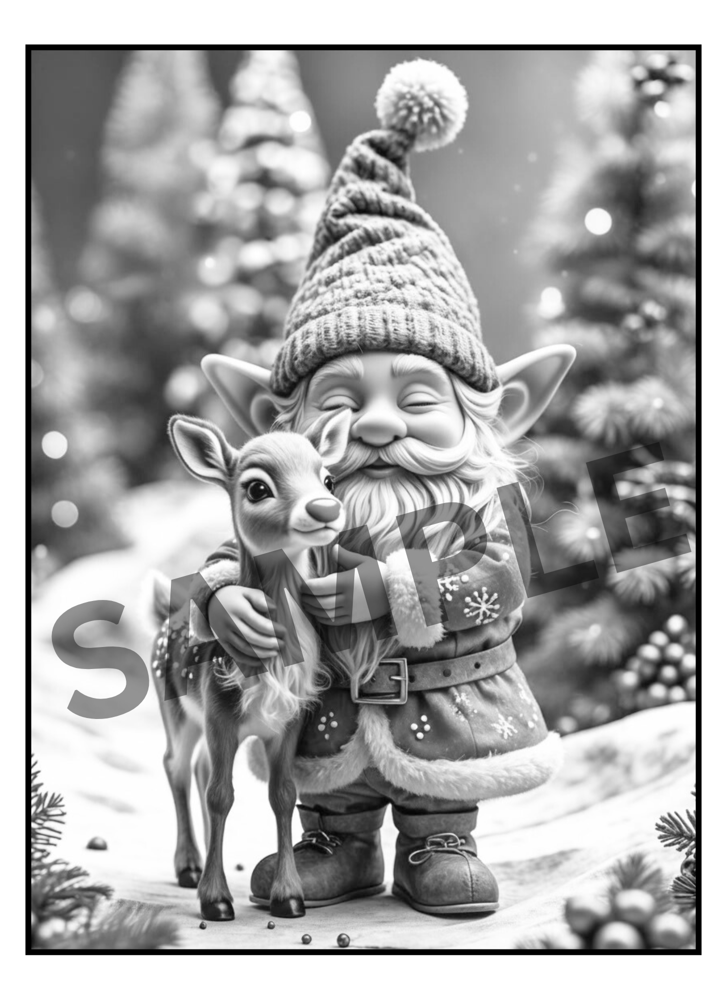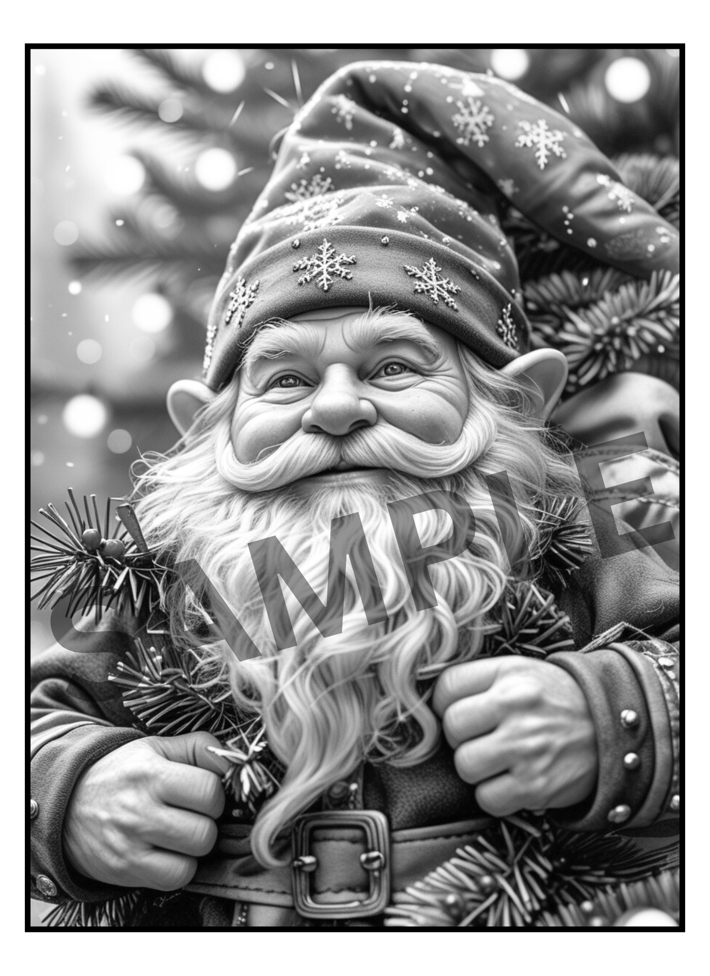 North Pole Gnomes Greyscale Coloring Pages (Digital Only!)