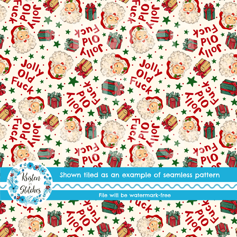 Jolly Old Fuck Sarcastic Christmas Santa Seamless Pattern