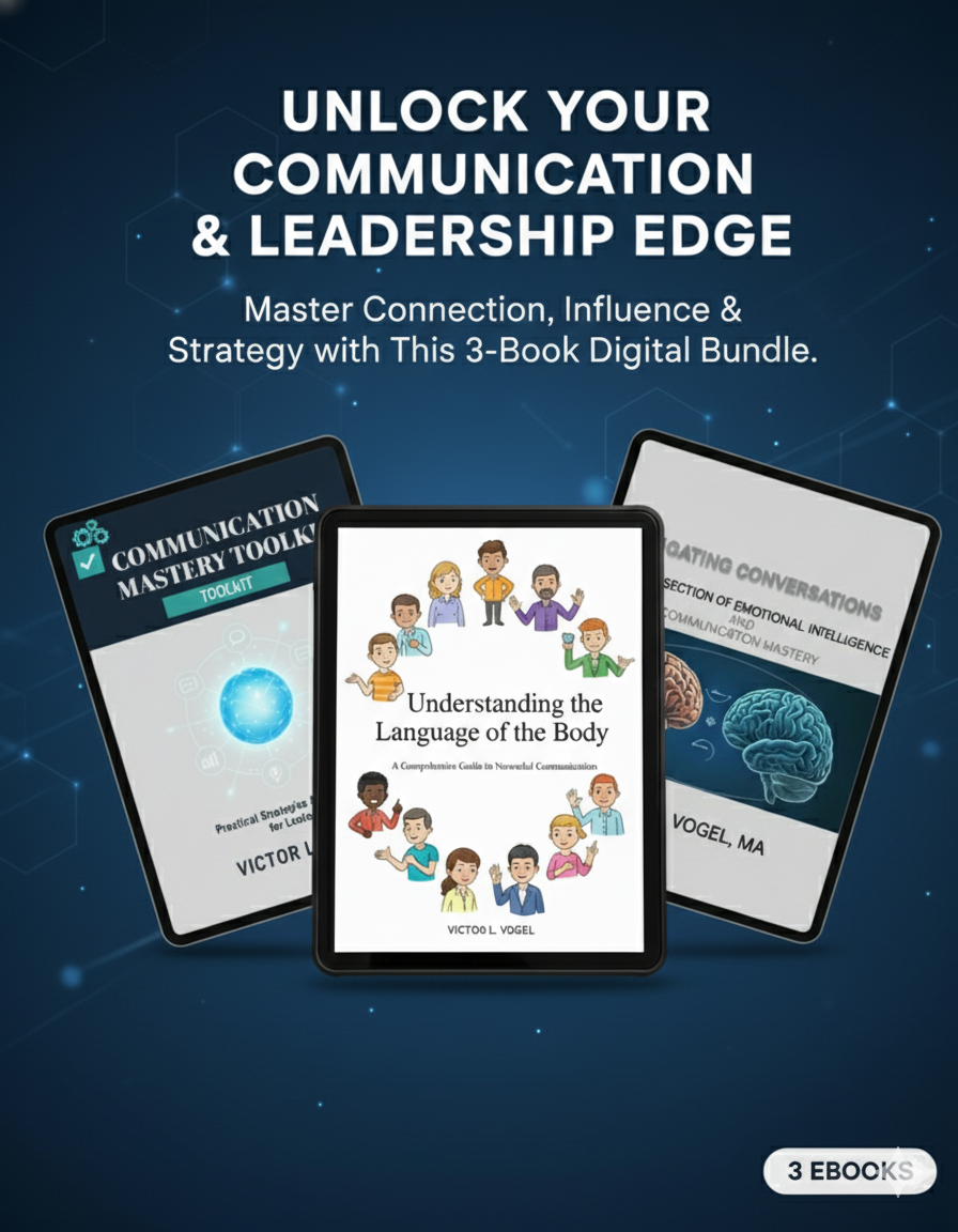 “Unlock unparalleled influence: 'Understanding the Language of the Body' and 'Navigating Conversations' provide a wealth of interpersonal communication insights to master connection and dialogue.Complement this with the 'Communication Mastery Toolkit' to transform and improve your communication behavior, achieving a true leadership edge.”