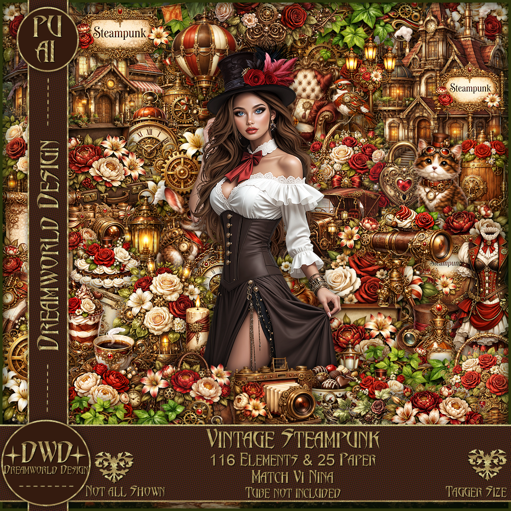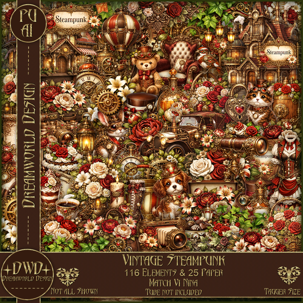*Vintage Steampunk* is a tagger-size kit with 116 elements & 25 papers.