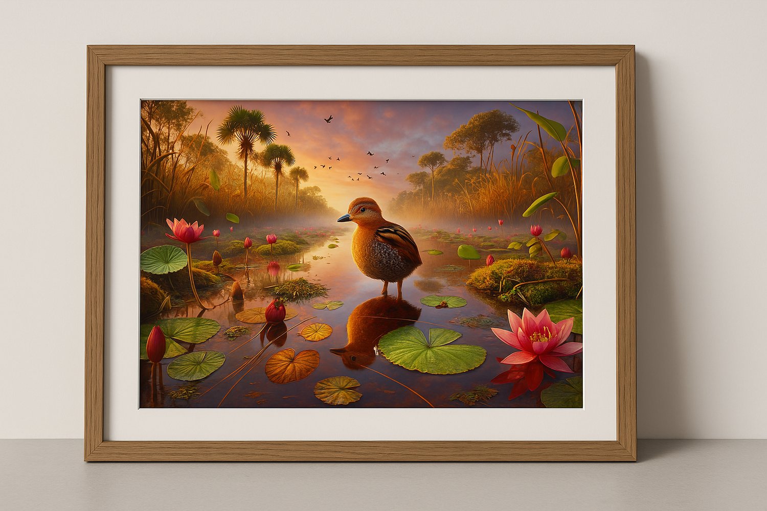 Rufous-faced Crake (Laterallus xenopterus) comes to life in this stunning digital poster, bringing the beauty of rare wildlife into your space.