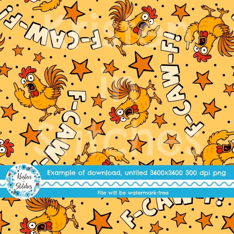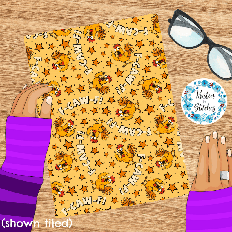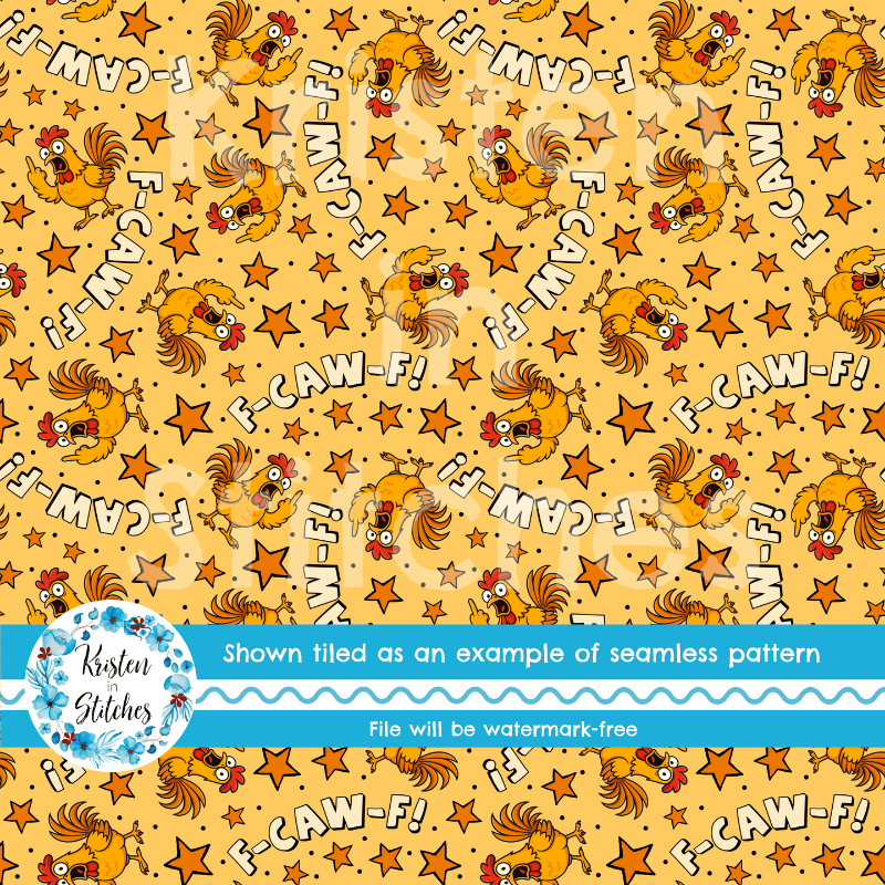 F-CAW-F Sarcastic Roosters Seamless Pattern, Fuck Off FcawF Birds, Middle Finger, Chickens