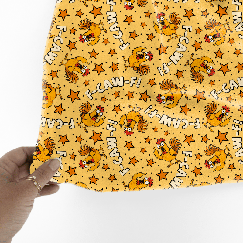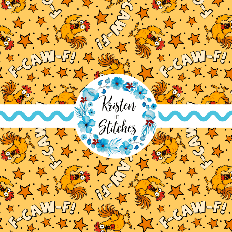 Sarcastic roosters saying "F-Caw-F" with middle fingers and stars on yellow.