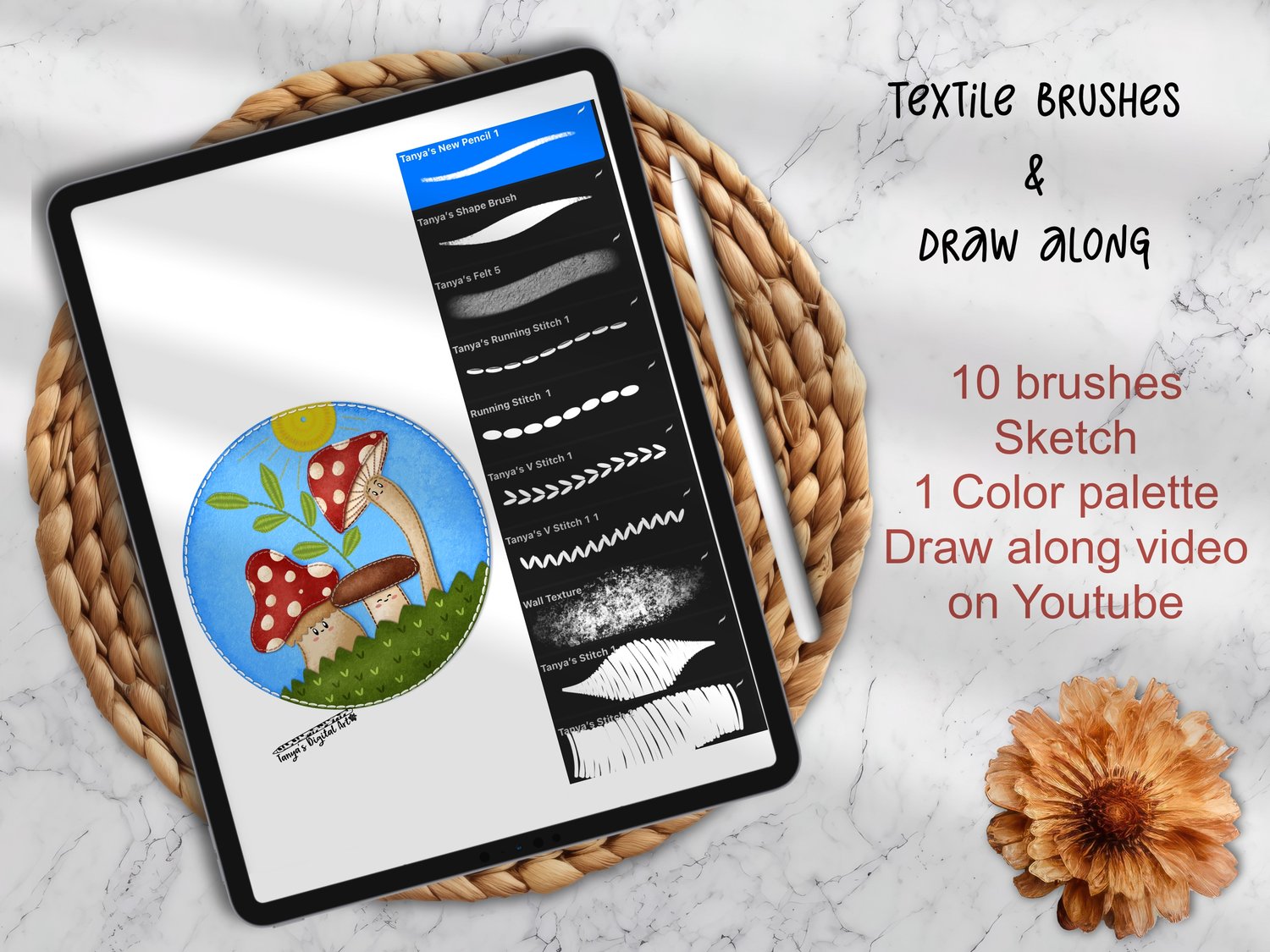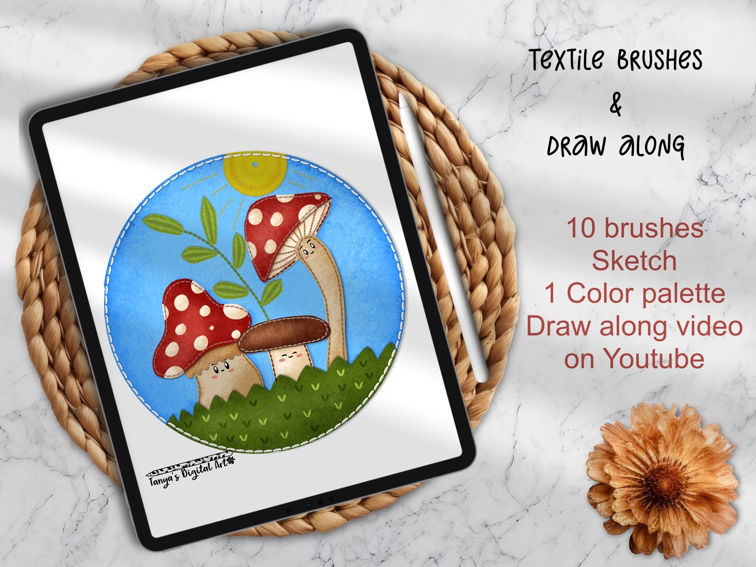 Draw a Textile mushroom + FREE brushes