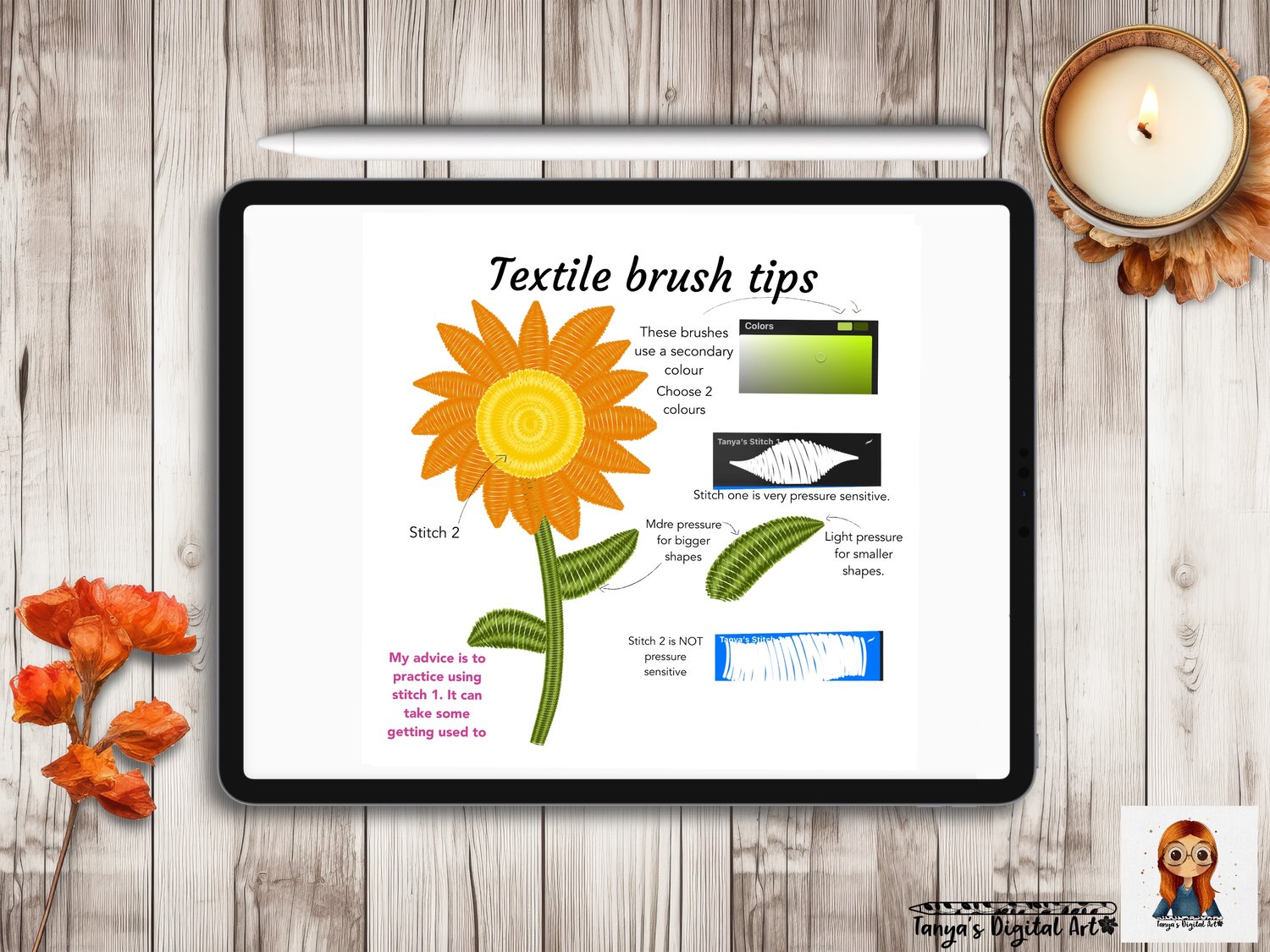 Want to know how to use the brushes or follow along as I draw? Check out the video on YouTube!