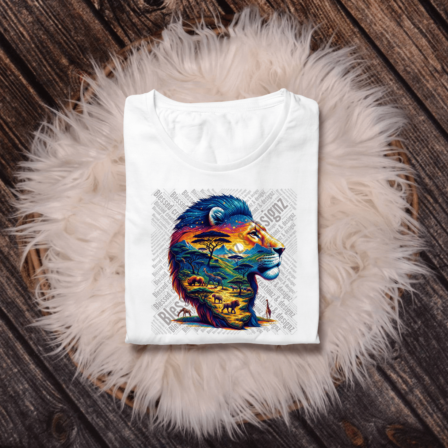 A vibrant Digital download png of Africa in the silhouette of a Lion.