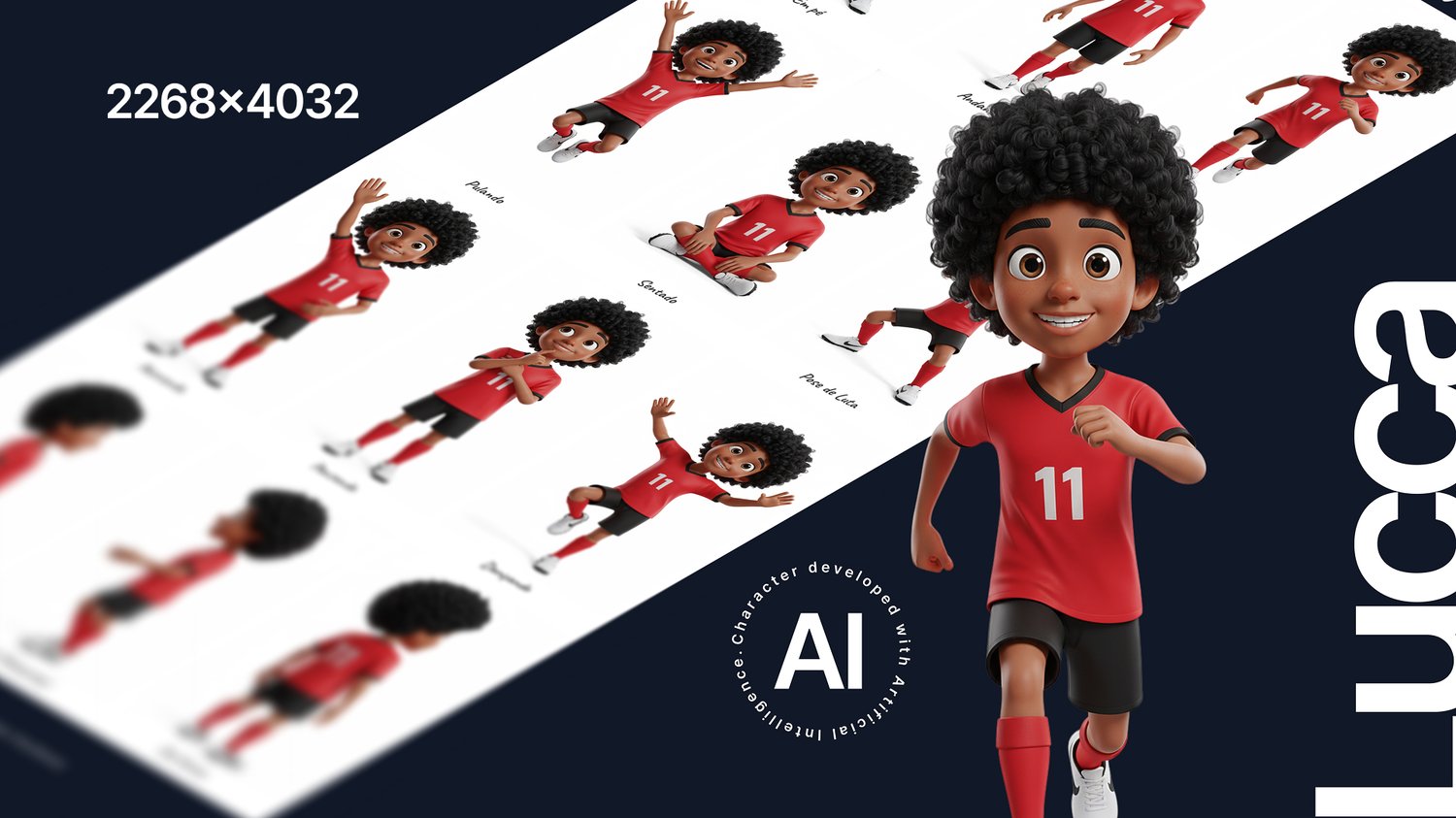 Bring life and energy to your projects with Lucca! This is a premium 3D character of a charismatic young athlete full of attitude. Created with the assistance of Artificial Intelligence, Lucca features a modern, friendly look, perfect for capturing your audience's attention. This complete package includes 12 versatile poses, ready to illustrate any situation.