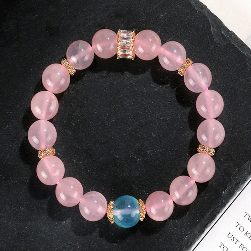 Natural Crystal Bracelet – Rose Quartz & Aquamarine for Emotional Balance