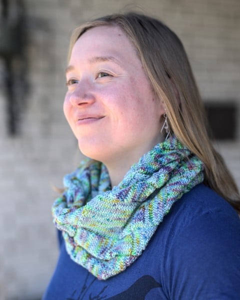 Entrelac patterns show off hand-dyed yarn with short color changes especially nicely. The entrelac for this pattern has the added interest of rectangles of different sizes. The pattern guides you through the instructions with lots of step photos.