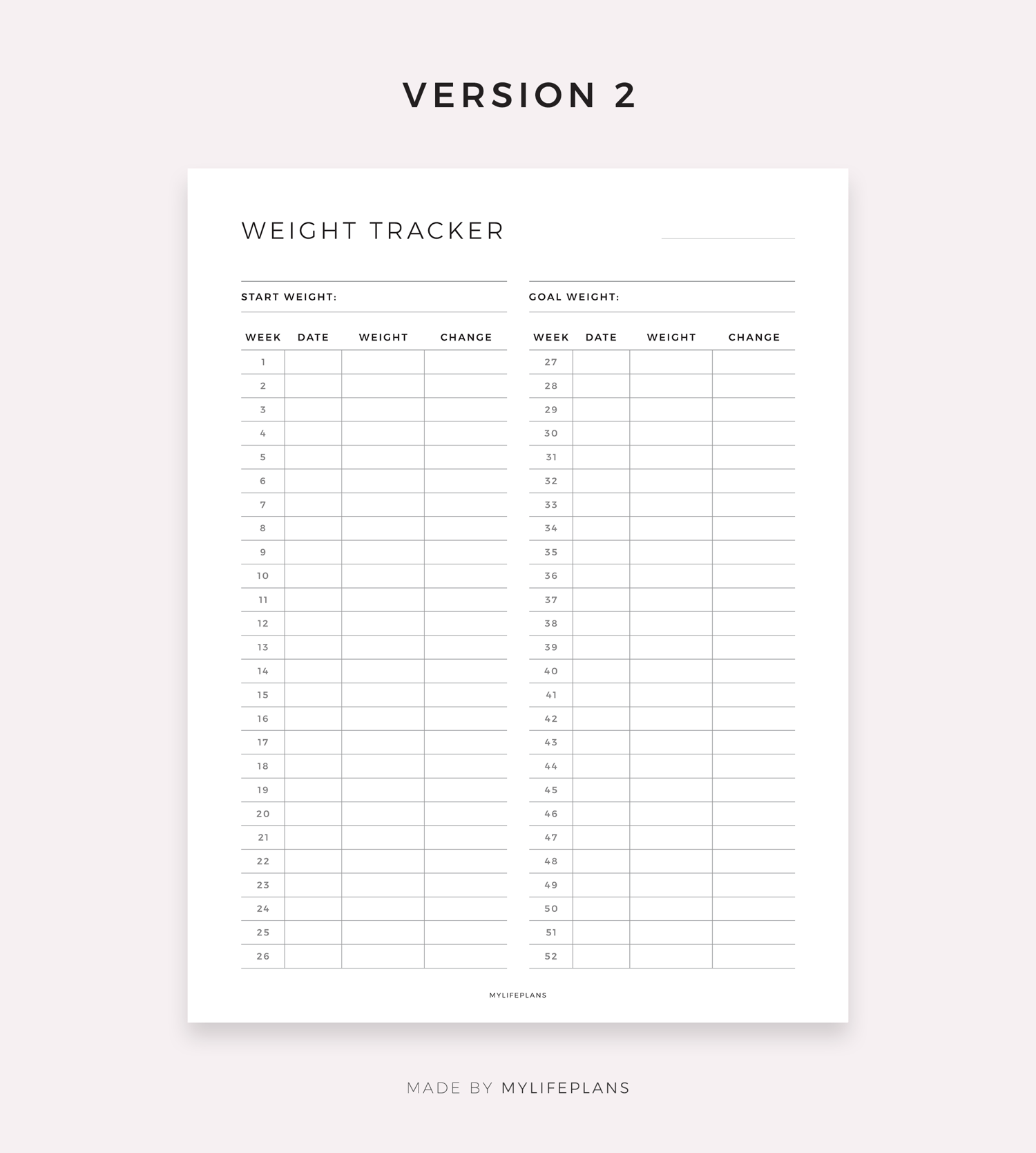 52 Week Weight Tracker, Digital Template for Goodnotes, Notability, Ipad