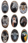 Hand-Painted Wild Tiger Face Portrait on Wooden Slice: Ideal Gift or Home Decor