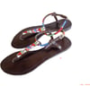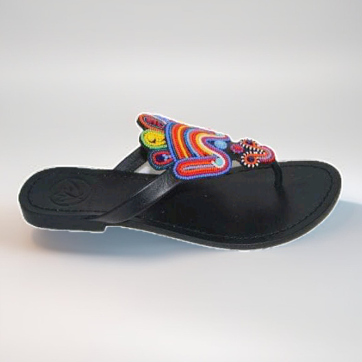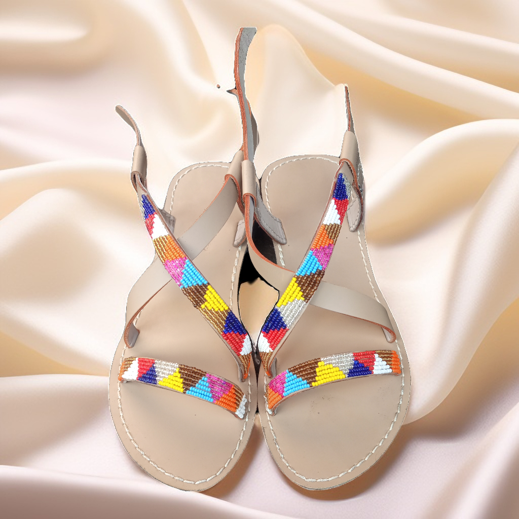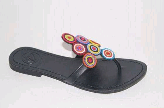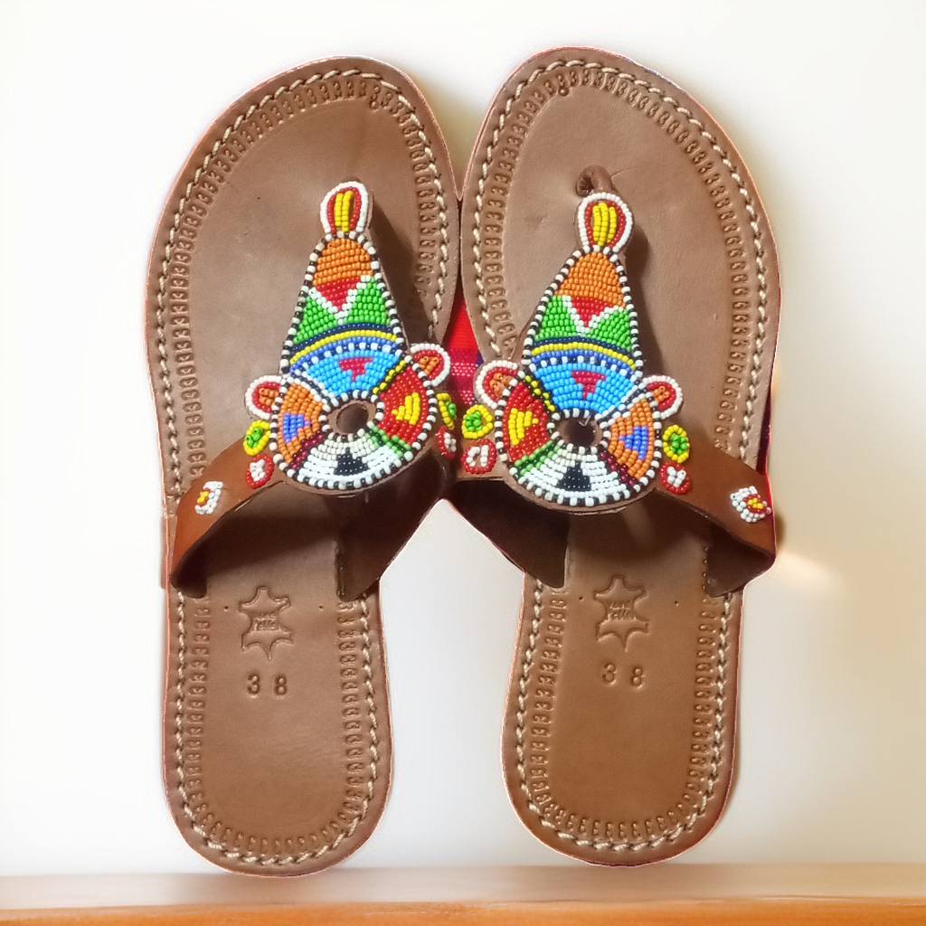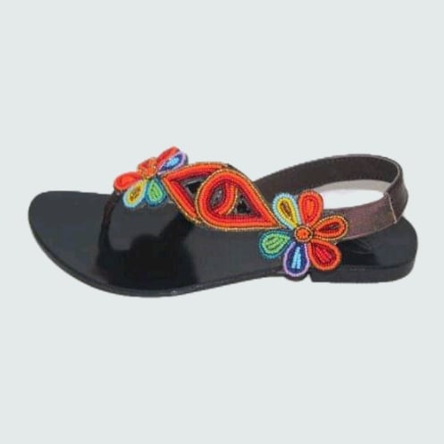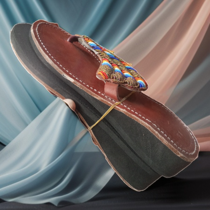 High-quality beaded leather Sandals. Beads are sewn into leather making very beautiful patterns. High-quality leather and beadwork finishing. Available in primary colors, secondary colors, and earthly colors e.g. brown.