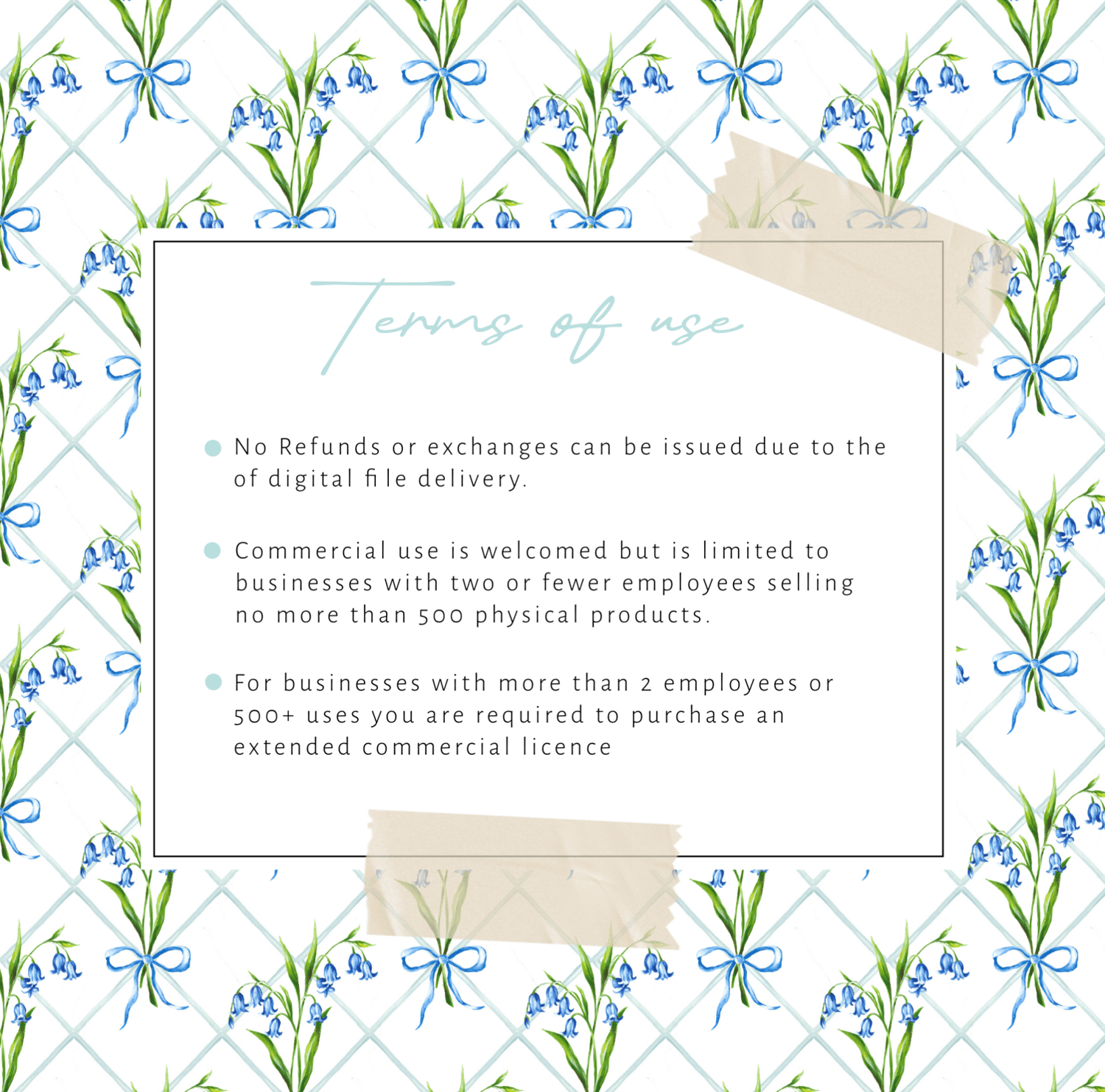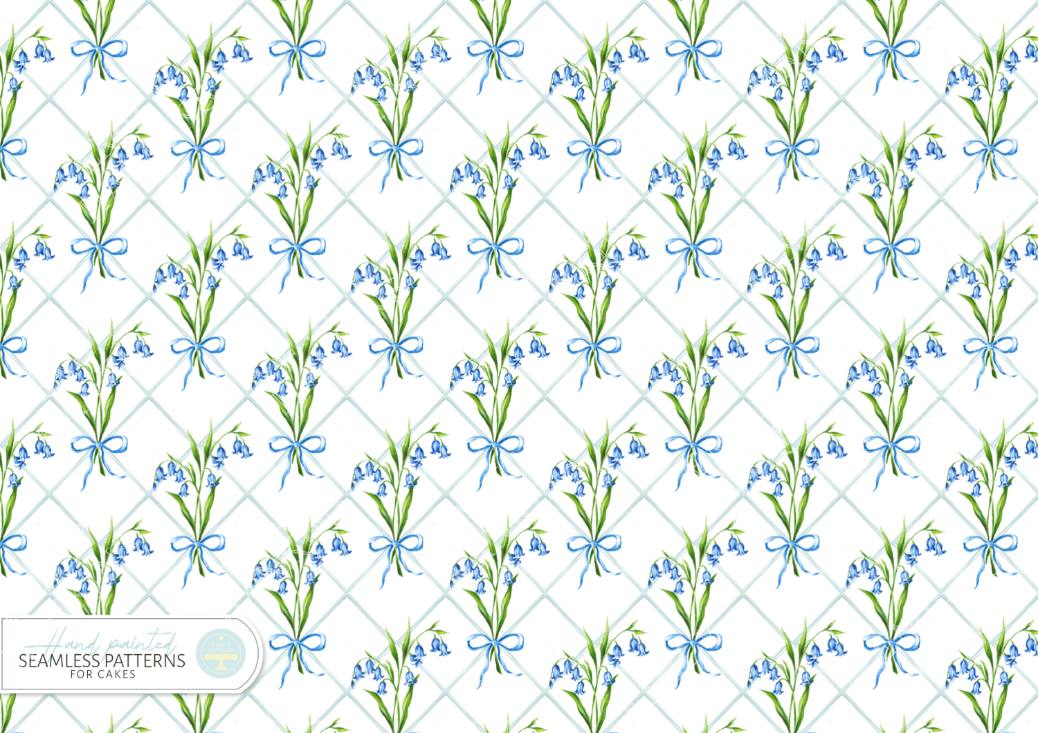 BLUEBELL TRAIL - SEAMLESS PATTERN BUNDLE is a collection of seamless pattern designs specifically created for use on cakes - perfect for spring birthdays, spring weddings, Easter goodies, Mothers Day and more!