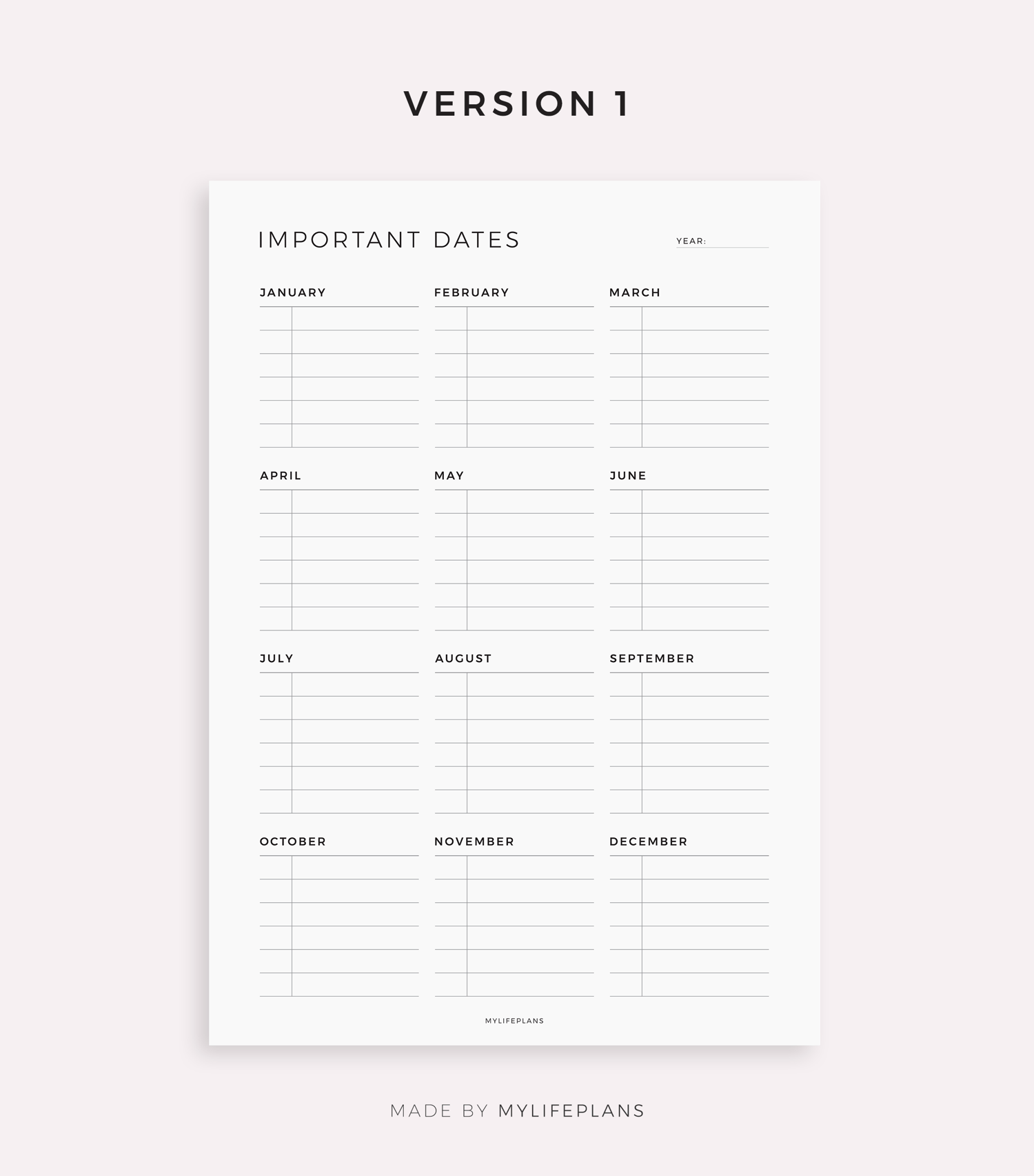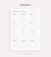 Yearly Important Dates, Template for Remarkable, Supernote, Kindle Scribe, Boox, Kobo
