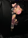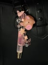 Pink rubber piggy Junk Keychain with lip gloss dangle.