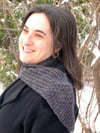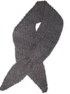 This scarf is a quick knit with a sophisticated look. If you make the scarf exactly as it looks in the photo, it uses 220 yards of bulky weight yarn with size 9(5.5mm) needles. It’s a great way to liven up your wardrobe choices in the midst of a long winter. The Winnipegger’s flexible in terms of yarn choice… Choose something purchased locally, spin your own yarn, or raid your stash! Each end features a triangle point with a CO or BO of just 3 stitches, and an offset bramble stitch, which widens out to a rectangle in the middle. Adjust the length to suit and tuck one end through the other to create a finished “bow tie” look.