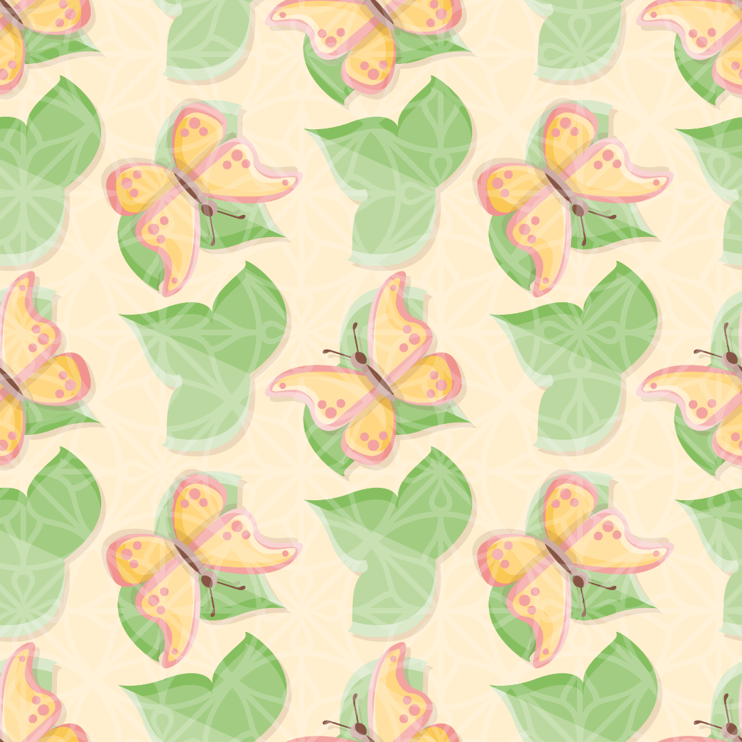 Leaf and butterfly illustration pattern. Cute bugs and vegetation wallpaper background.