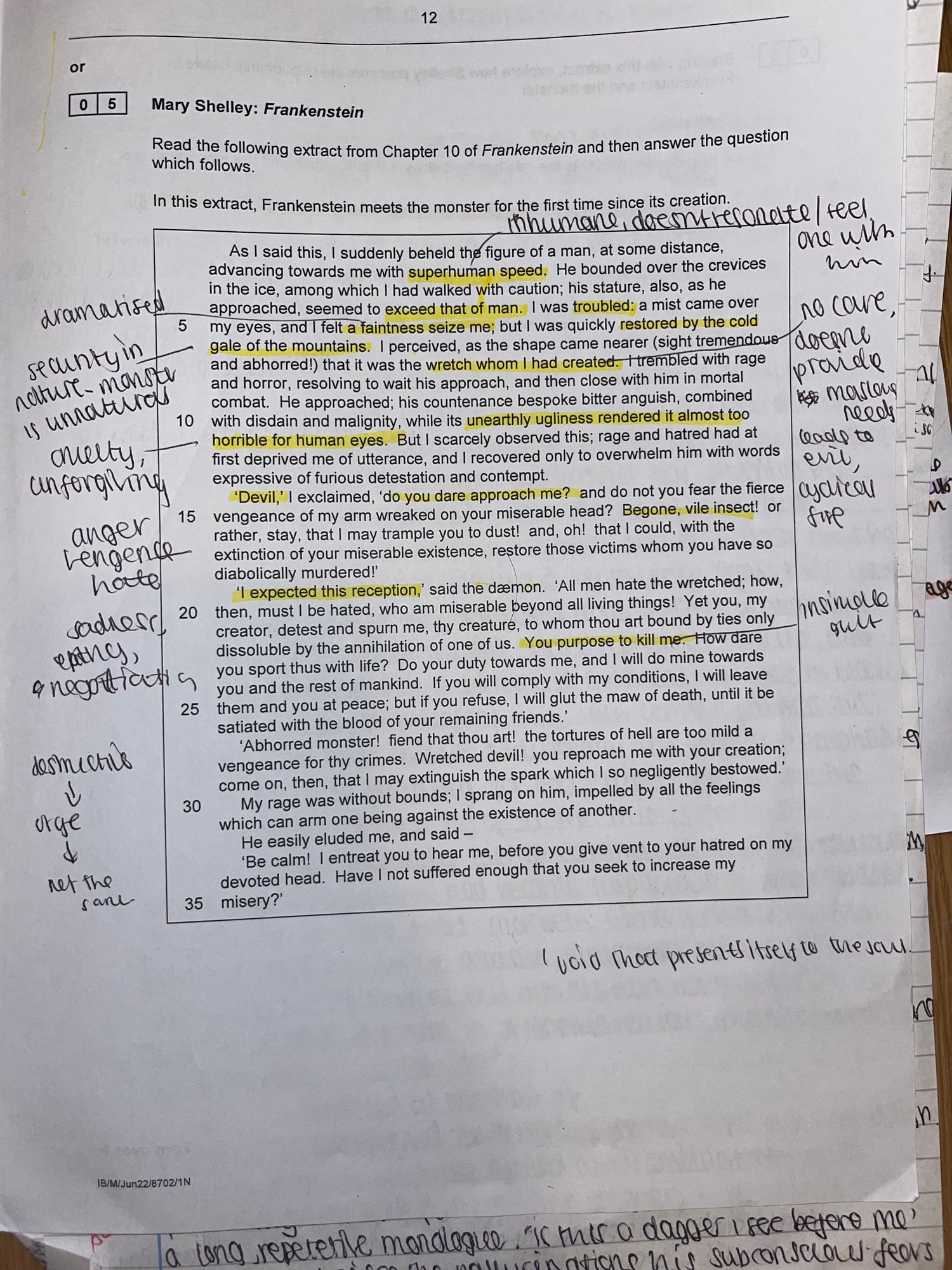 FULL MARKS GRADE 9 FRANKENSTEIN QUESTION