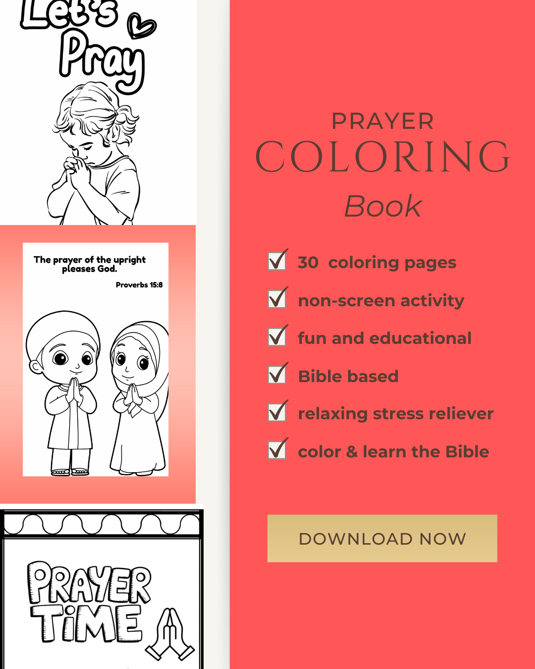 Are you teaching your children about prayer? Well this 30 page coloring book is a great tool to help children 3 to 8 learn about prayer while having fun coloring. This book includes coloring activities to teach: