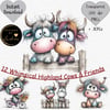 12 Whimsical Highland Cow PNG Bundle | PNG + JPEGs | 30 files