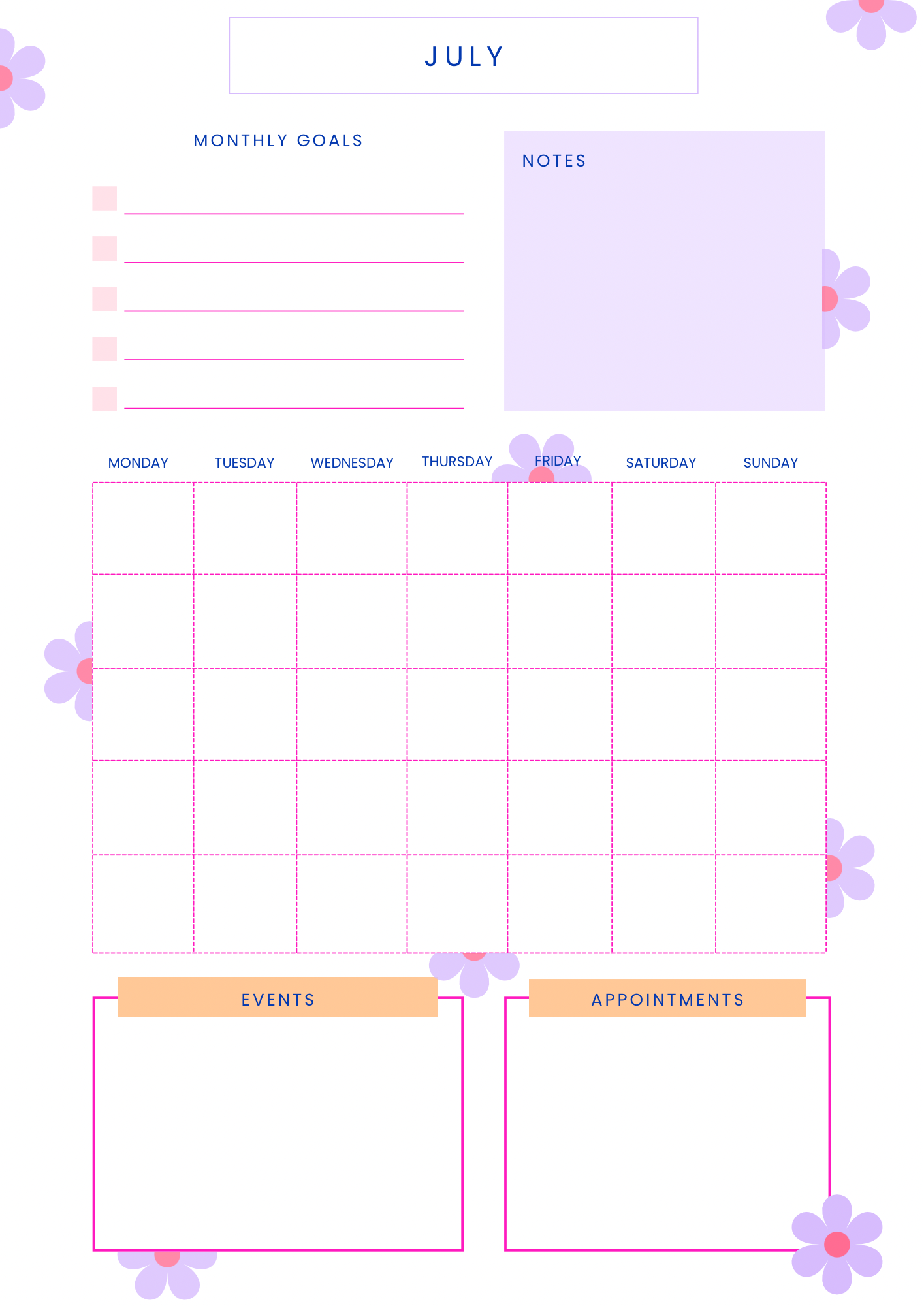 Take control of your week with our beautifully designed Online Monthly Planner – the perfect tool to boost your productivity, stay organized, and crush your goals. Whether you’re juggling work, school, or personal projects, this digital planner gives you a clear, structured layout to plan your days, prioritize tasks, and track your progress—all in one place.