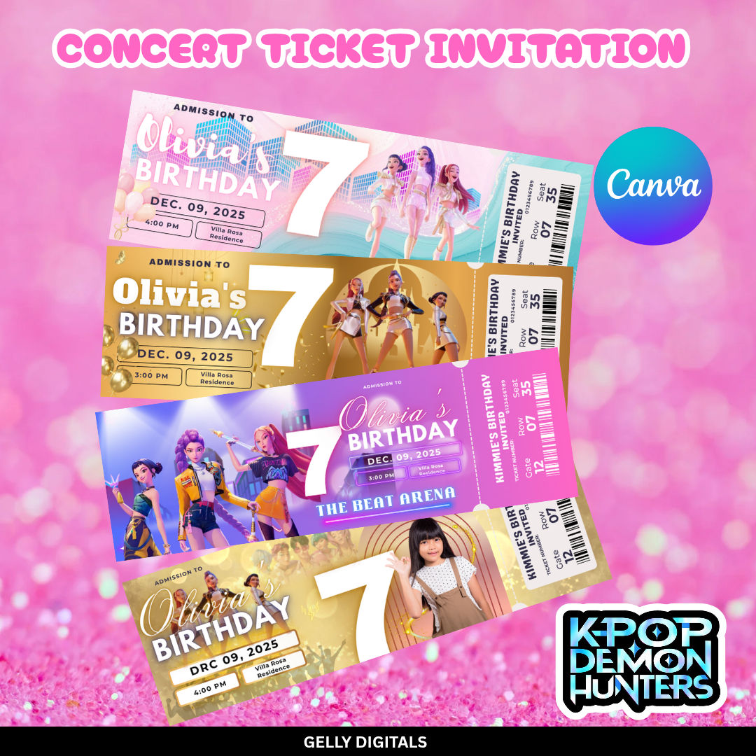 Make birthdays extra special with these Concert Ticket Birthday Invitations 🎤💖 Perfect for K-pop fans and little superstars — editable in Canva and ready to impress! 🌟