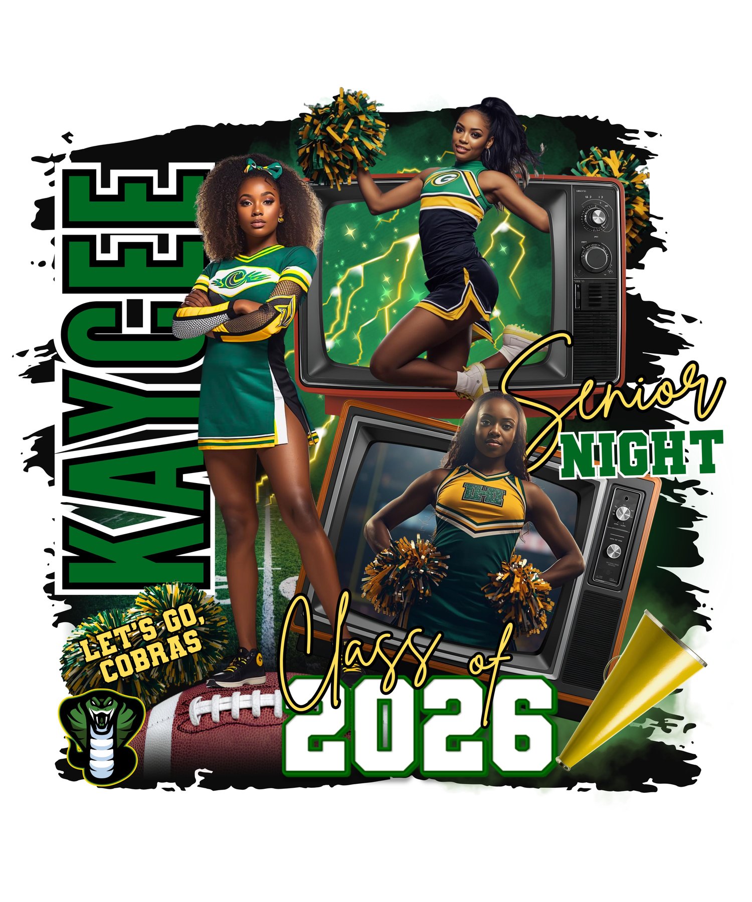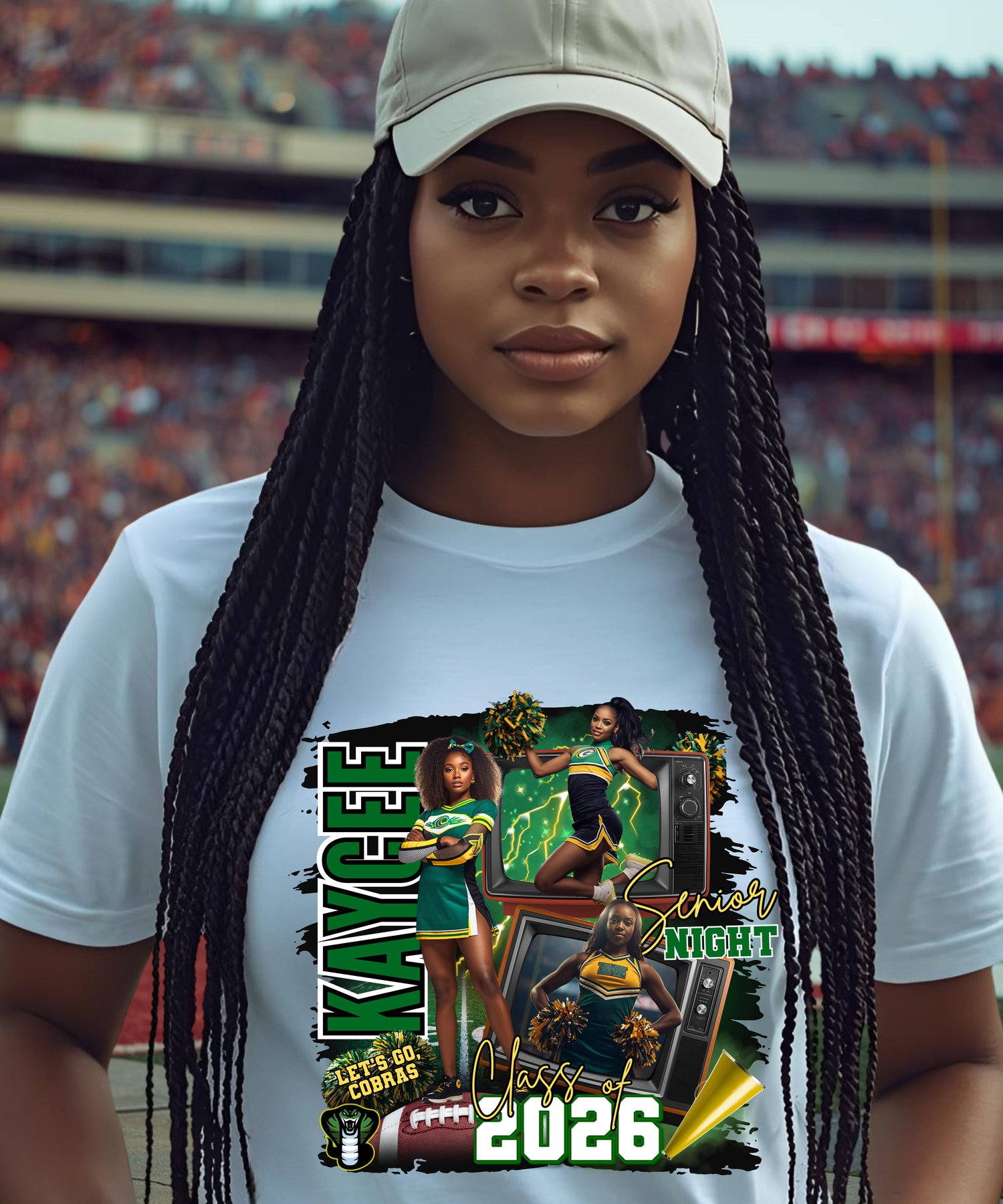 Cheer loud, shine bright, and rep your squad with this fierce cheer spirit design! Packed with cheerleaders in action, megaphones, pom-poms, this design is perfect for showing off your school spirit. Whether for senior night, competitions, or game day, this shirt is all about energy and pride.