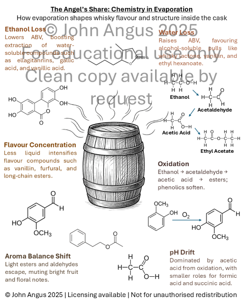 This detailed visual breaks down the chemistry behind the Angel’s Share and how it shapes whisky flavour during maturation.
