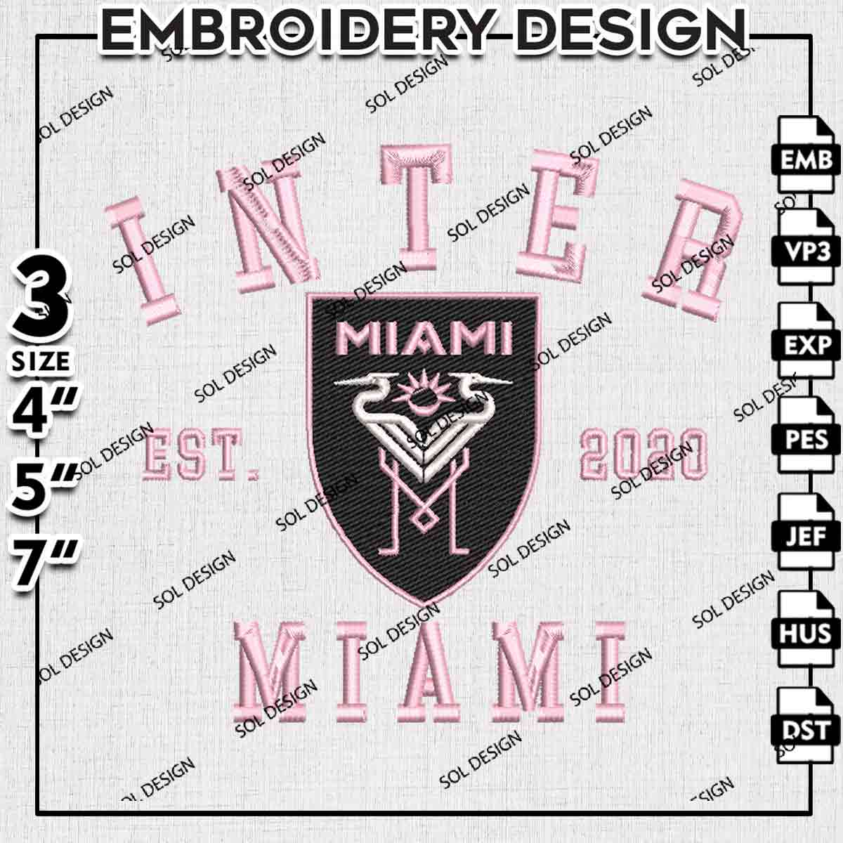 Inter Miami CF Est 2020 Logo Embroidery Designs, Inter Miami CF Embroidery Files, MLS Inter Miami CF Soccer Team Logo Embroidery, Major League Soccer Machine Embroidery Design, Digital Download
