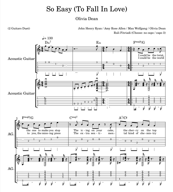 How To Play Olivia Dean - So Easy (To Fall In Love),2 Guitars Tab Lyrics Chords Notes PDF Audio MP3