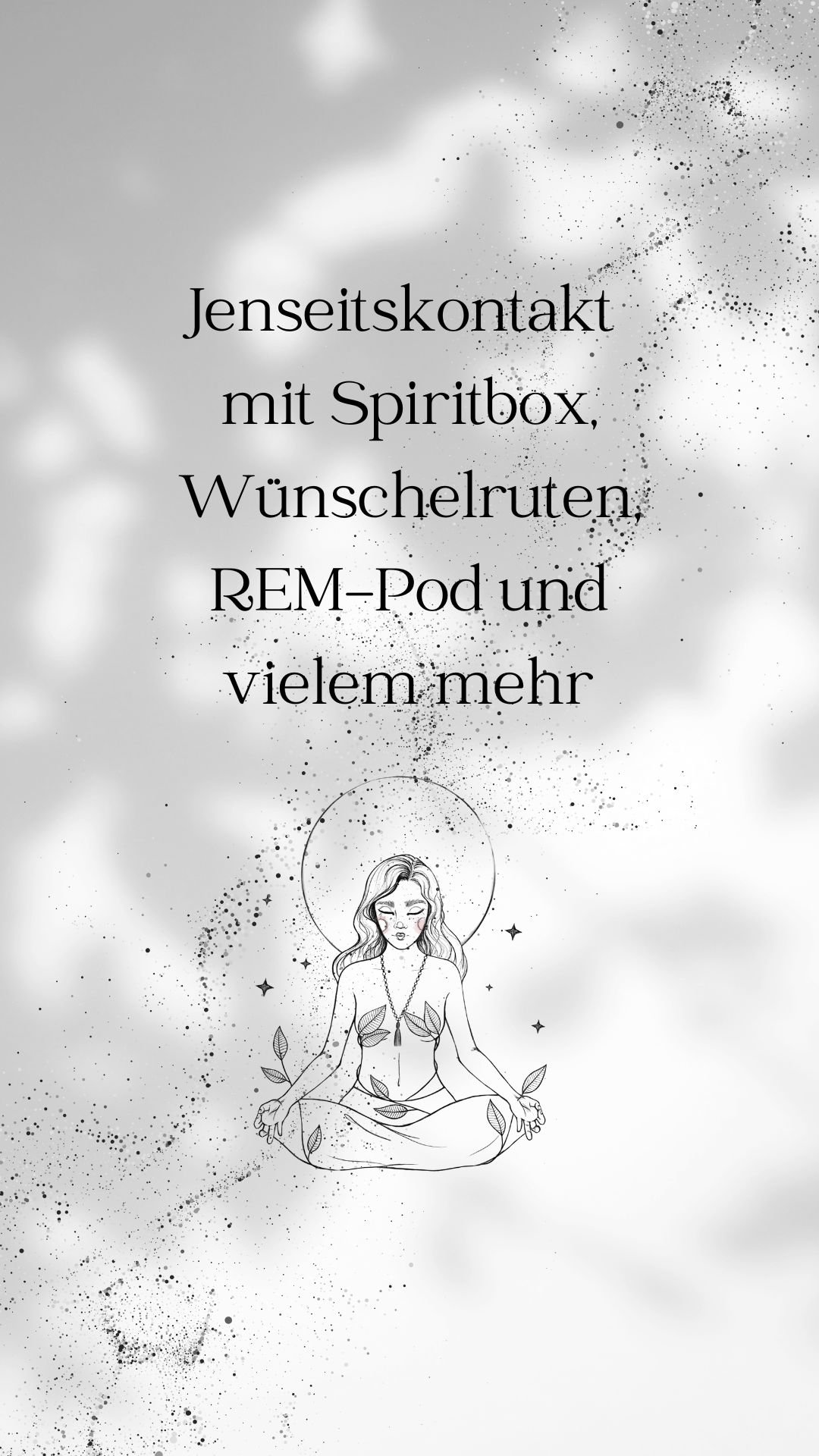 hier gibt es noch etwas spezielles dazu, der Jenseitskontakt mit der Beweisführung bleibt gleich, jedoch werde ich während des Kontaktes noch verschiedene Mittel zur Kommunikation hinzuziehen, wie etwa die Spiritbox, Wünschelruten, den REM-Pod und vieles mehr!
