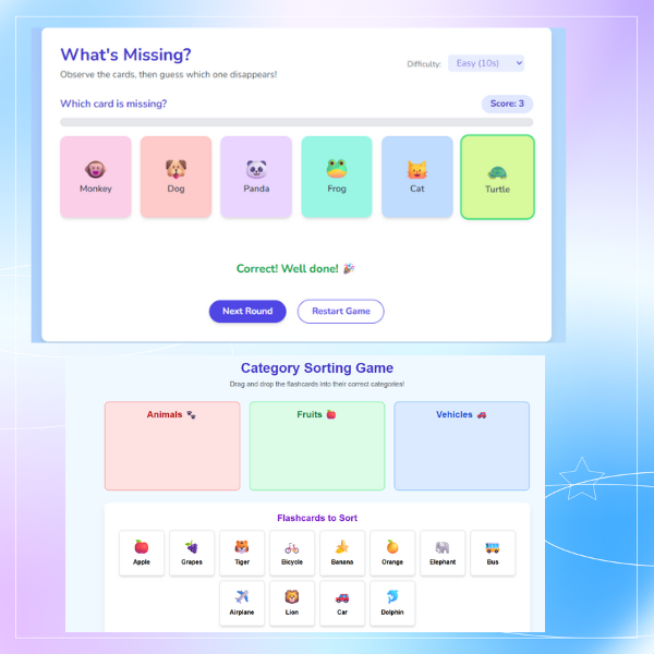 From "Match & Stick" to “Guess the Card,” these flashcard games make learning fun!