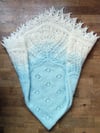 Arctic Air is the second of the three Arctic Aura haps that I designed in 2015. It is the loftiest of all the pieces, and its colours are meant to bring Arctic breeze to your everyday life and make you feel refreshed every time you wrap yourself with this hap.