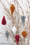 The finished ornaments are between 4-6 inches high and 3-4 inches wide, the dimensions vary according to the design of each ornament.