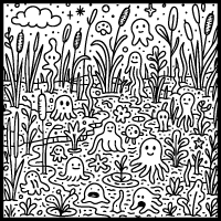 A high-quality PDF of a page from my coloring book; Doodle Worlds Book 1.