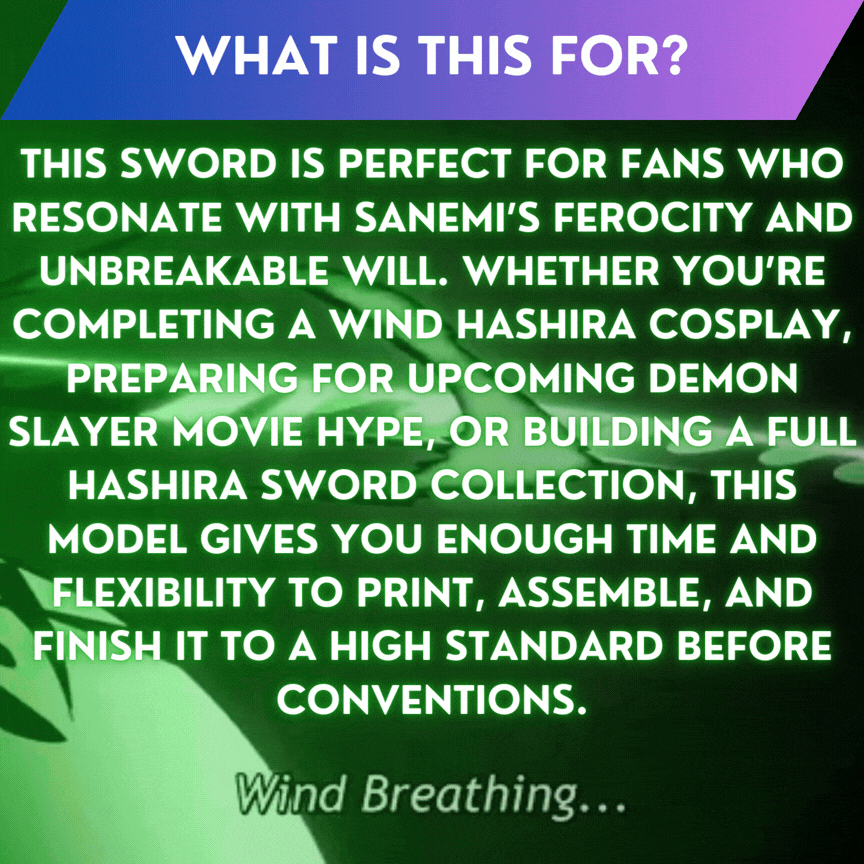 Printing this sword means holding a symbol of survival, rage, and unwavering determination — a true reflection of the Wind Hashira himself.