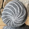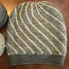 The MC yarn creates the cables on the right side/outside of you the hat. The CC yarn creates the cables on the wrong side/inside of the hat. Two cable stitches are used to create lines that spiral up the hat. Picture tutorials are included to show how I work these cables. The Reversible Step One Cowl teaches the same techniques.