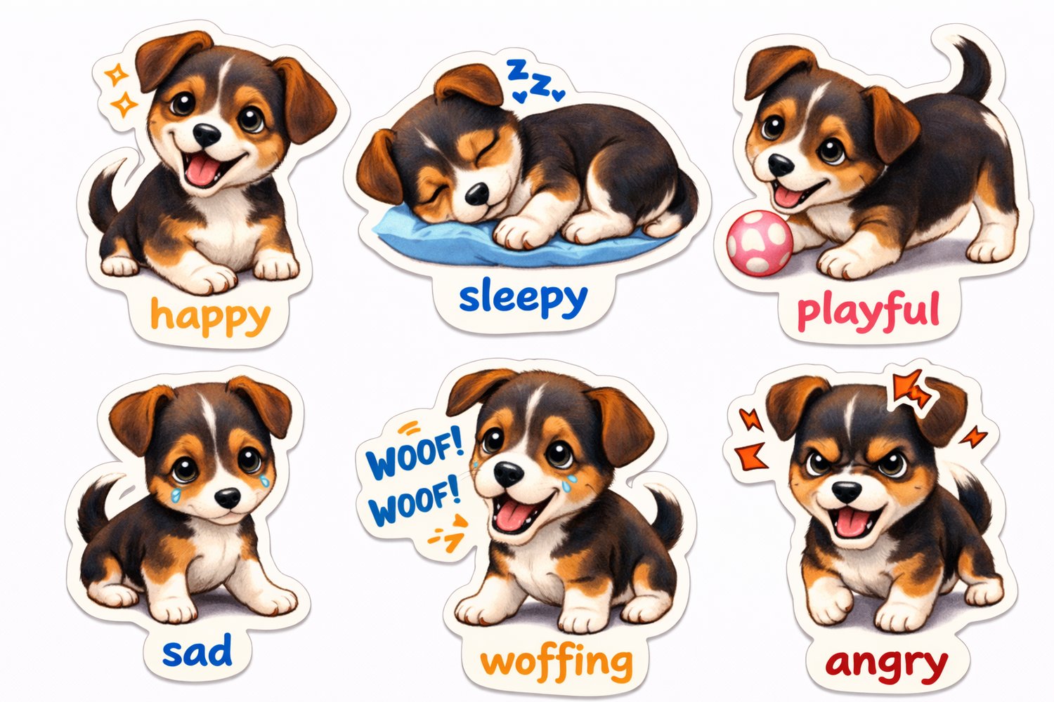 ๐ถ Adorable Cartoon Puppy Sticker Pack โ Jack Russell Terrier Style